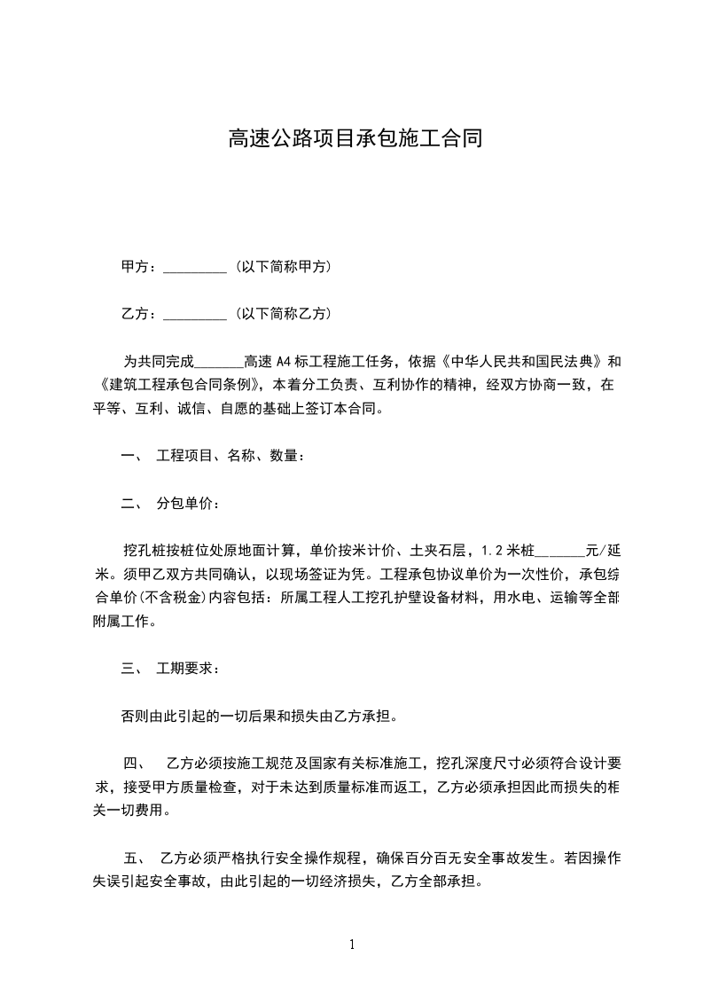 为共同完成_______高速A4标工程施工任务,依据《中华人民共和国民法典》和《建筑工程承包合同条例》,本着分工负责、互利协作的精神,经双方协商一致,在平等、互利、诚信、自愿的基础上签订本合同。