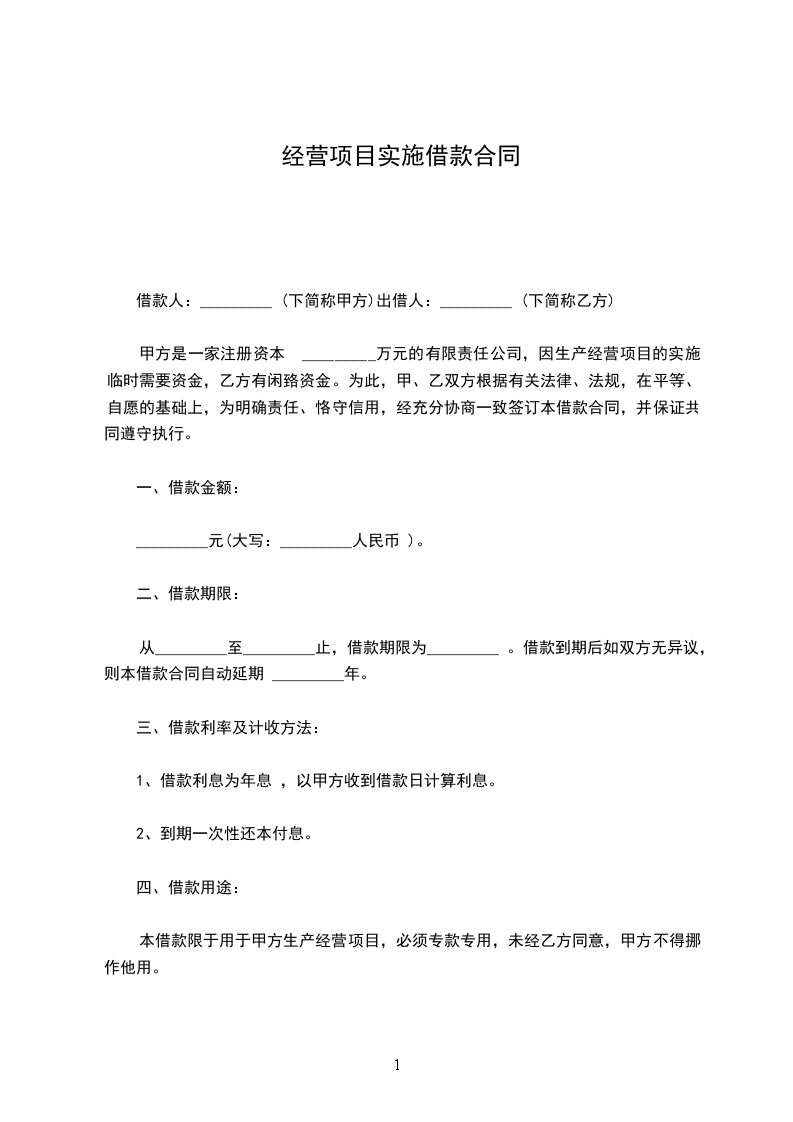第一条:本合同规定_______年贷款额为人民币(大写)_______万元,用于_____________________。