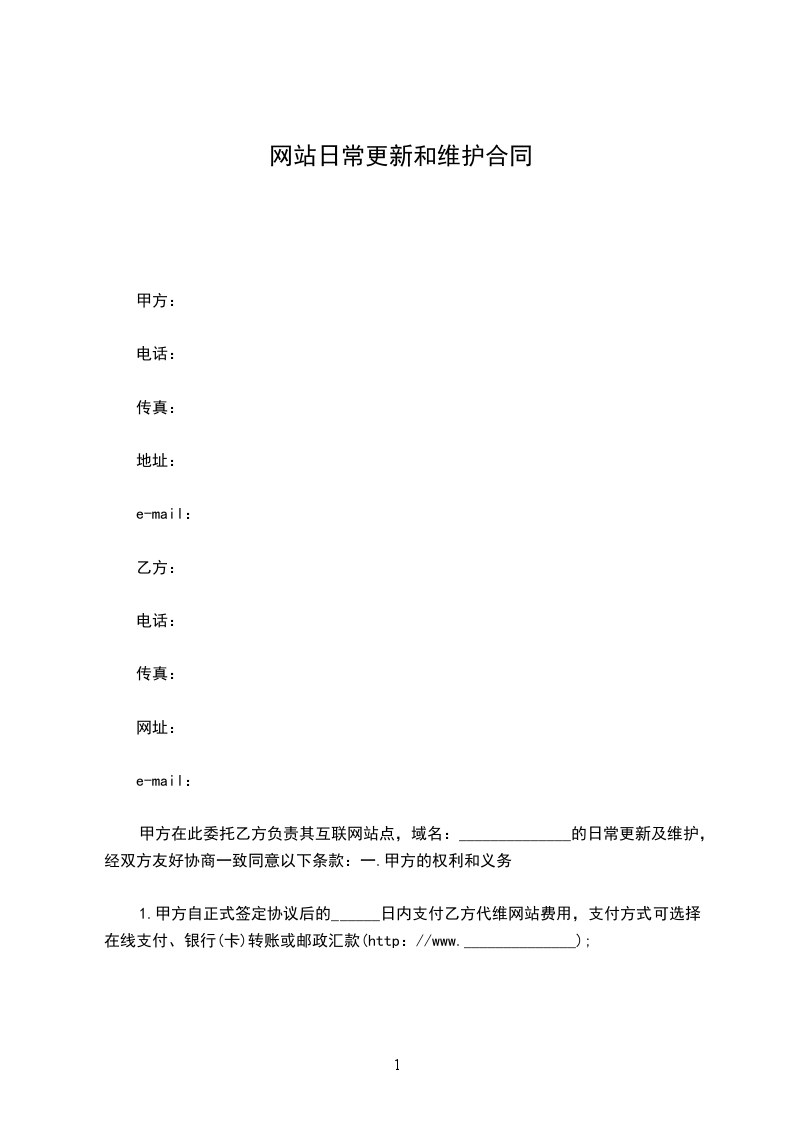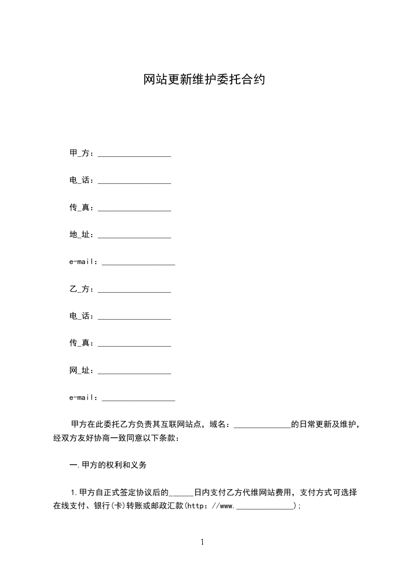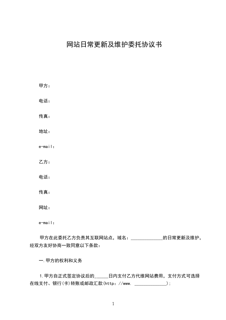甲方在此委托乙方负责其互联网站点,域名:______________的日常更新及维护,经双方友好协商一致同意以下条款: