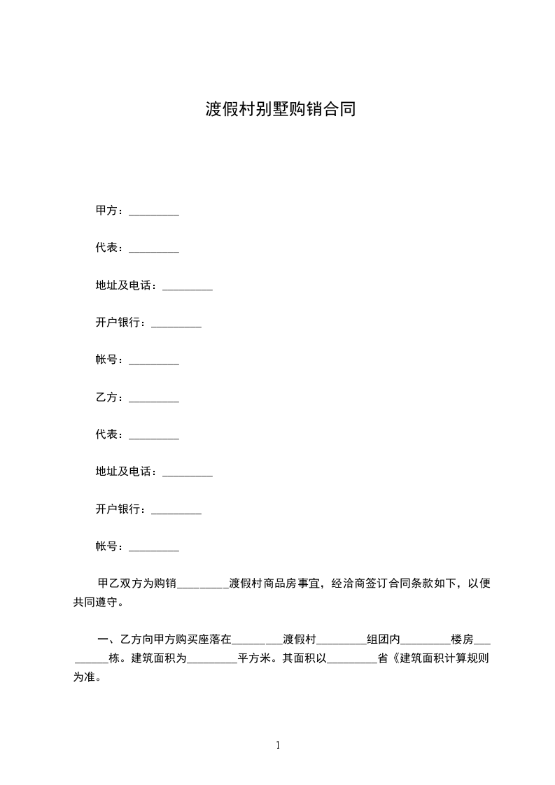 甲乙双方为购销_________渡假村商品房事宜,经洽商签订合同条款如下,以便共同遵守。