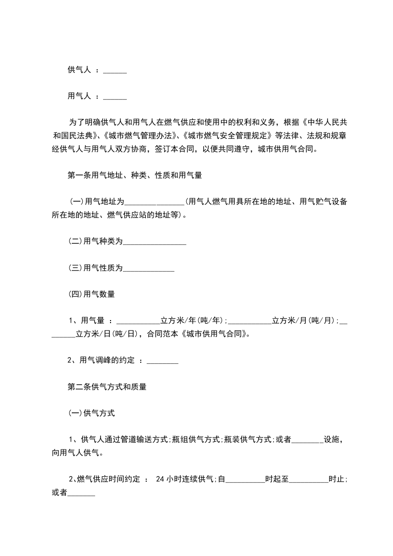 第一条供气人可供气量:__________________________________