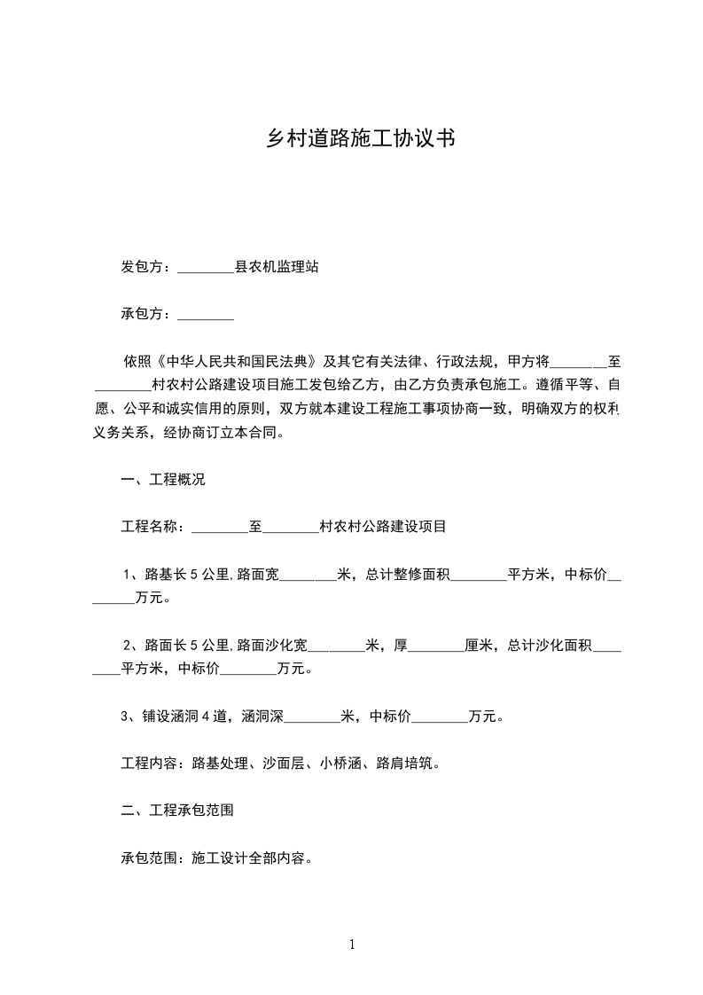 工程名称:________至________村农村公路建设项目