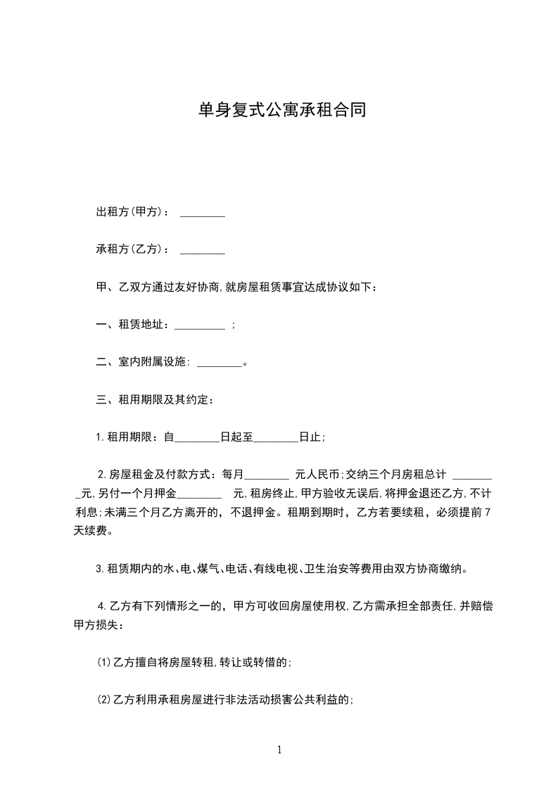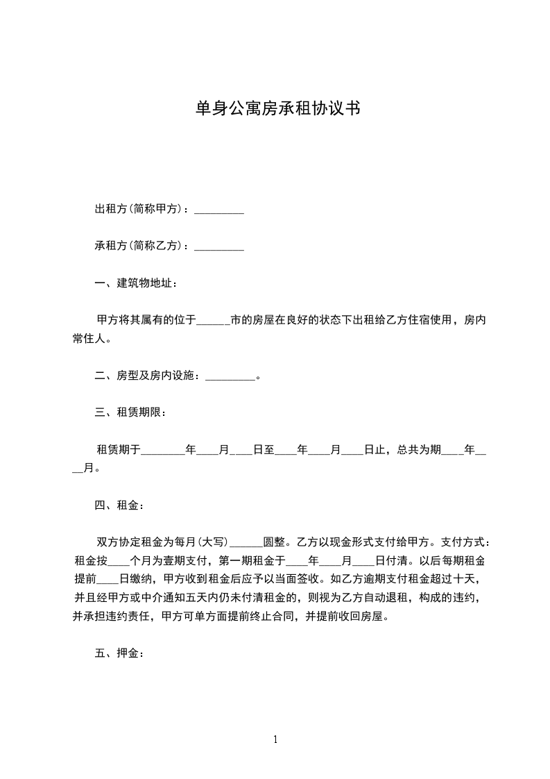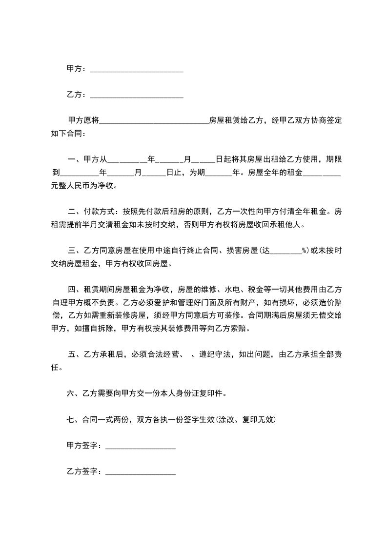 出租方(甲方):_________ 承租方(乙方):_________