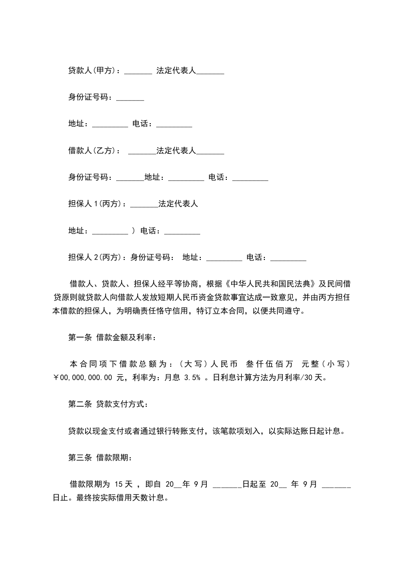 借款限期为 15天 ,即自 20__年 9月 _______日起至 20__ 年 9月 _______日止。最终按实际借用天数计息。