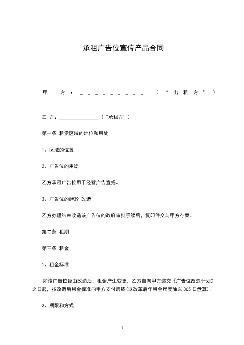 乙方承租广告位用于经营广告宣扬。