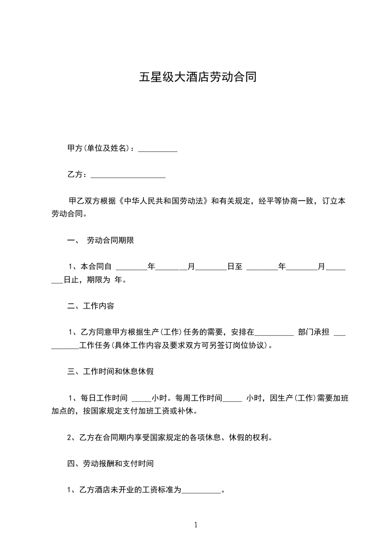 1、乙方酒店未开业的工资标准为__________。
