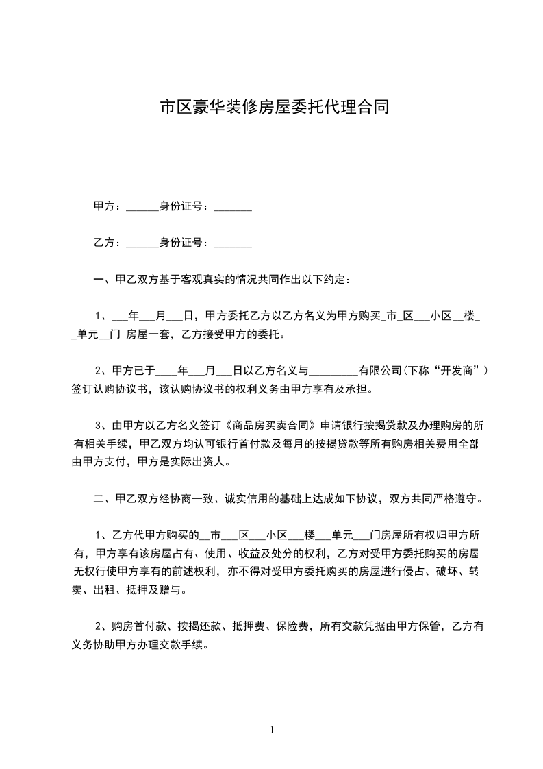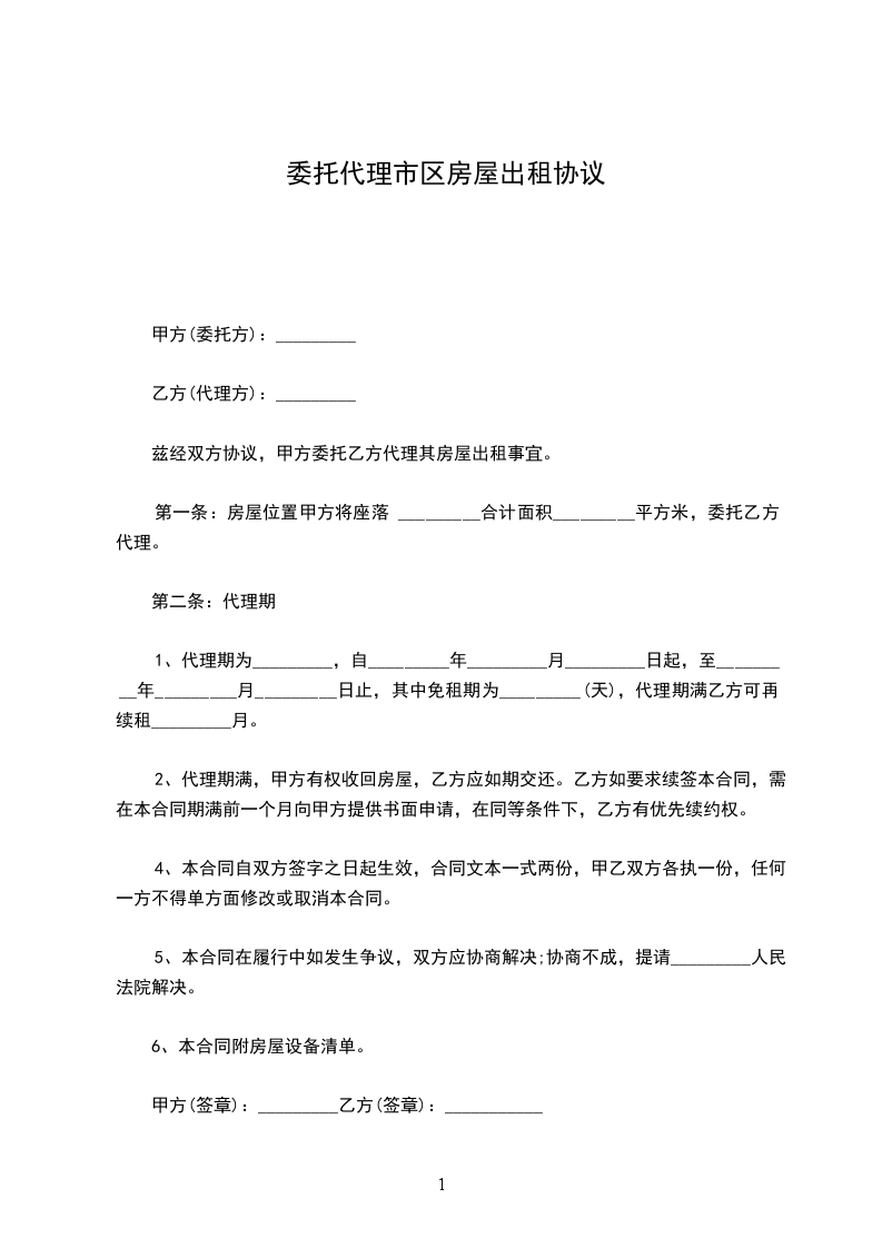 一、 甲方自愿将坐落在 ____________市____________ 区 的房屋(以下简称“该房屋”)委托乙方出租。