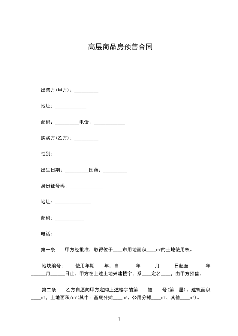 第二条 乙方自愿向甲方定购上述楼宇的第____幢____号(第__层)。建筑面积____㎡,土地面积/㎡(其中:基底分摊____㎡、公用分摊____㎡、其他____㎡)。