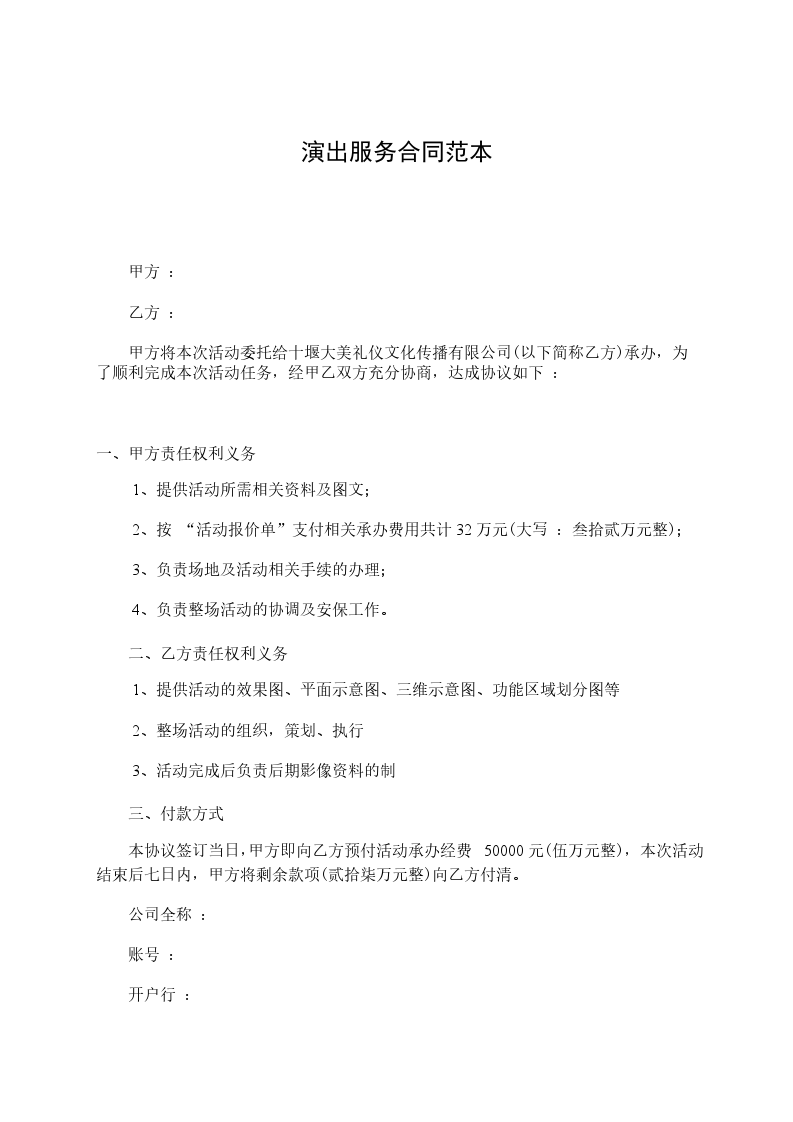 第二条 演出时间和场次自______年_____月_____日起至______年_____月_____日止,由_______至_______演出,计________天,演出_______场。