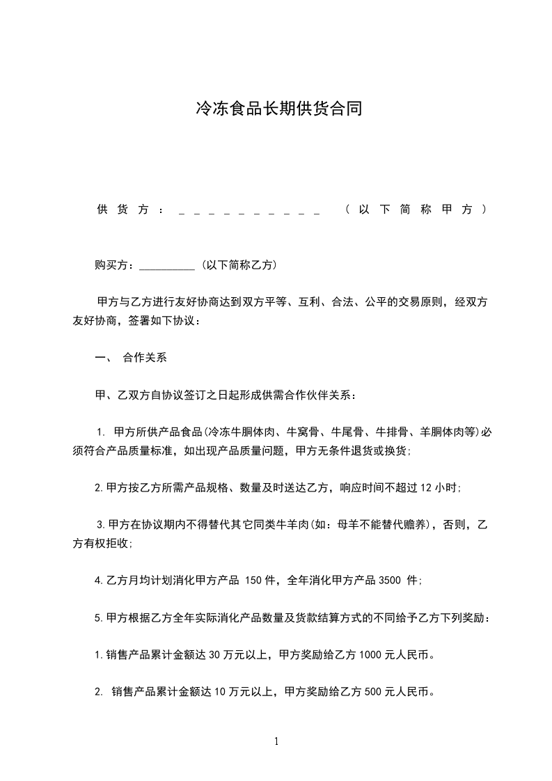 1. 甲方所供产品食品(冷冻牛胴体肉、牛窝骨、牛尾骨、牛排骨、羊胴体肉等)必须符合产品质量标准,如出现产品质量问题,甲方无条件退货或换货;