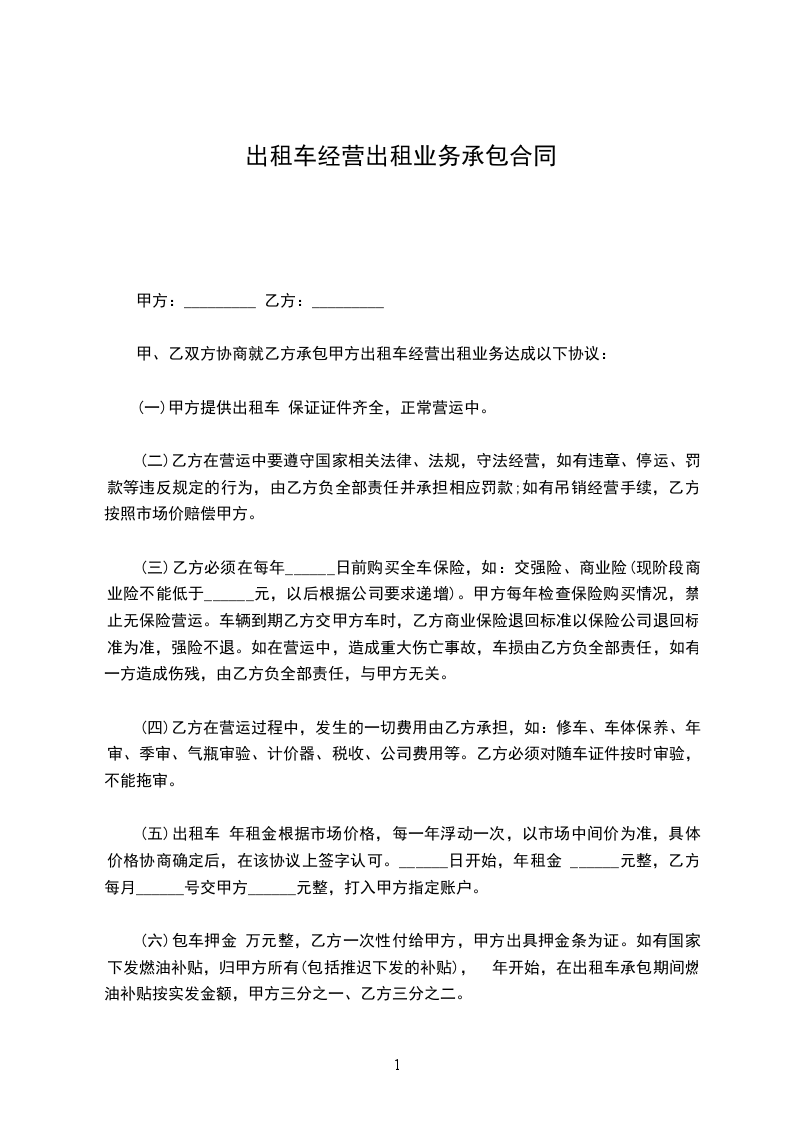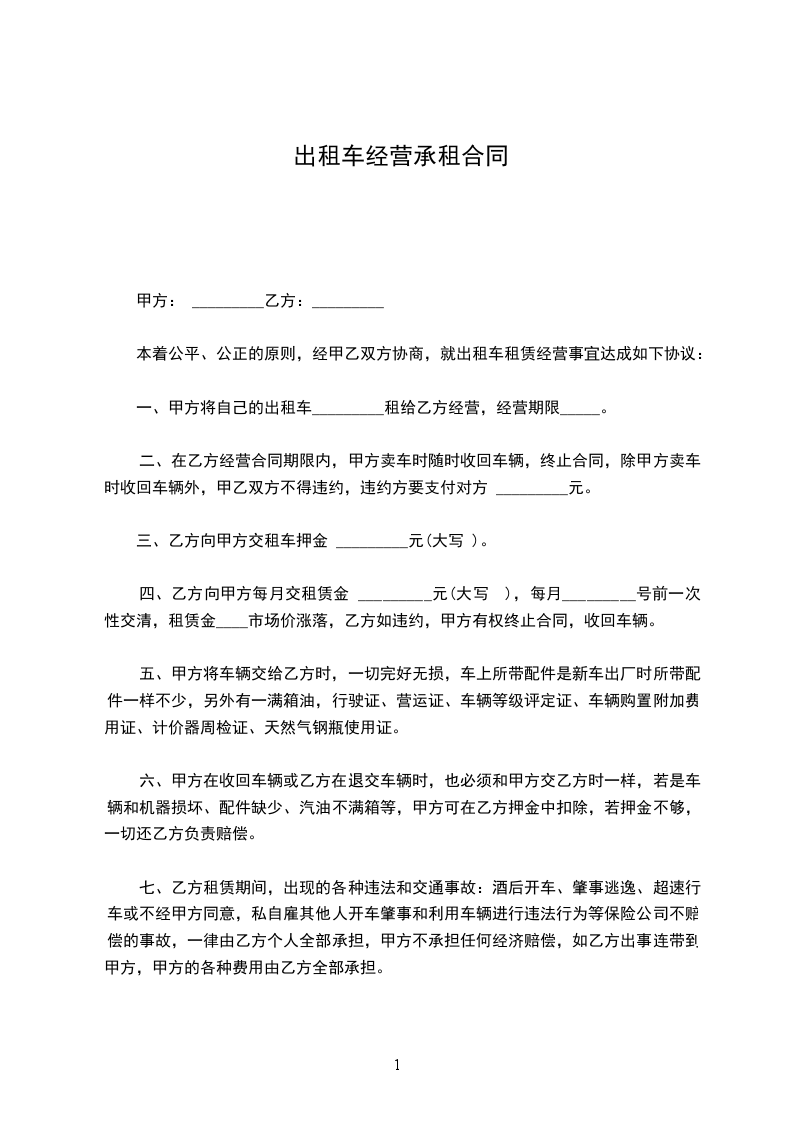 本着公平、公正的原则,经甲乙双方协商,就出租车租赁经营事宜达成如下协议: