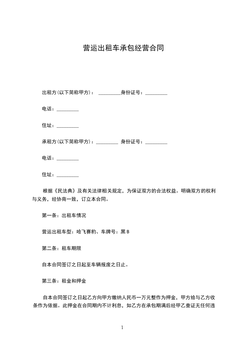一、甲方将自己的出租车_________租给乙方经营,经营期限_____。
