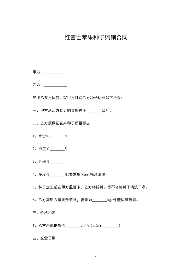 一、乙方向甲方提供优质套袋(光果)秦冠、富士_____斤,_____起步,每市斤_____元,每市斤______元,内含信息费_____元。