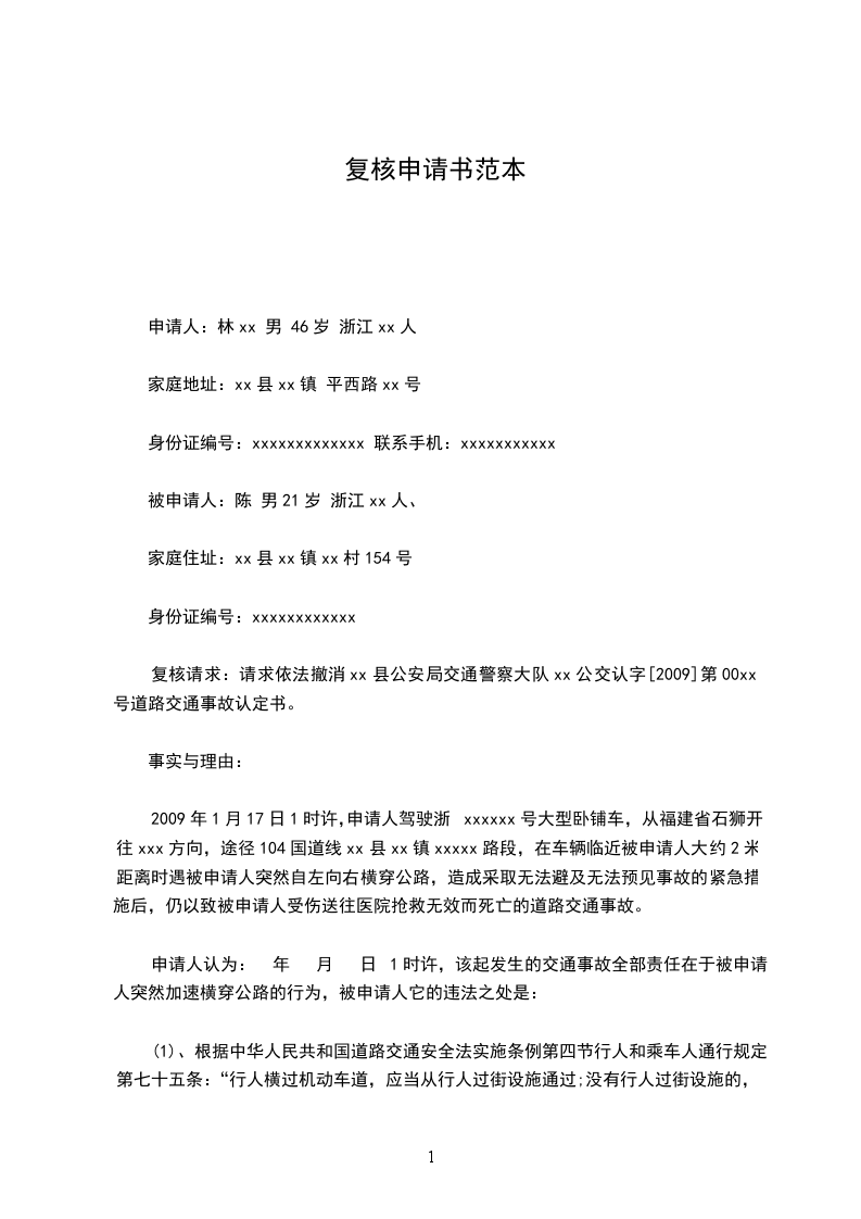 综上所述,《中华人民共和国道路交通安全法实施条例》第九十一条规定的交通事故责任认定原则是“公安机关交通管理部门应当根据交通事故当事人的行为对发生交通事故所起的作用以及过错的严重程度,确定当事人的责任”。申请人认为本起事故的过错完全在于被申请人在车辆临近时突然横穿公路,是具有严重的过错,而申请人在本次事故中完全没有过错,不应当认定为主要责任。这是完全颠倒黑白的事故认定,申请人请求上级公安机关本着事实求是,依法公正的执法理念,依法撤消xx县公安局交通警察大队xx公交认字[2009]第00xx号道路交通事故认定书,对本起事故重新作出责任认定。