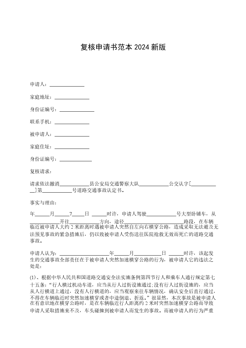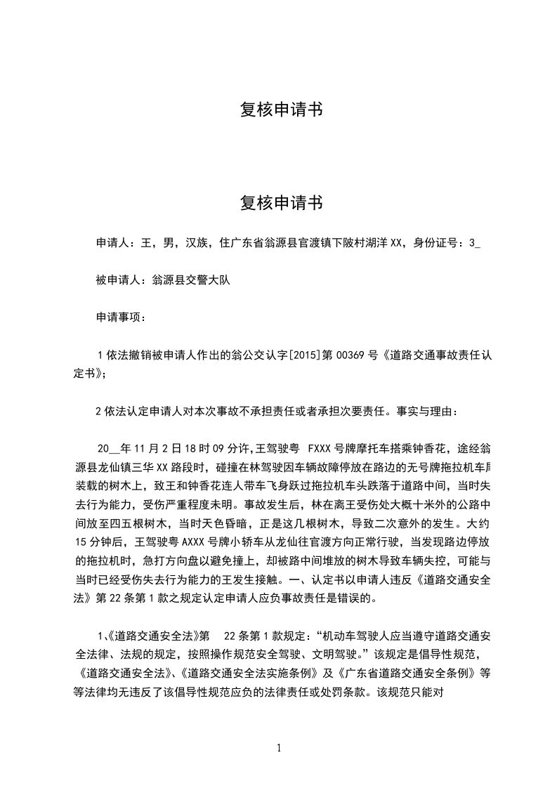 请求依法撤消____________县公安局交通警察大队____________公交认字[____________]第____________号道路交通事故认定书。