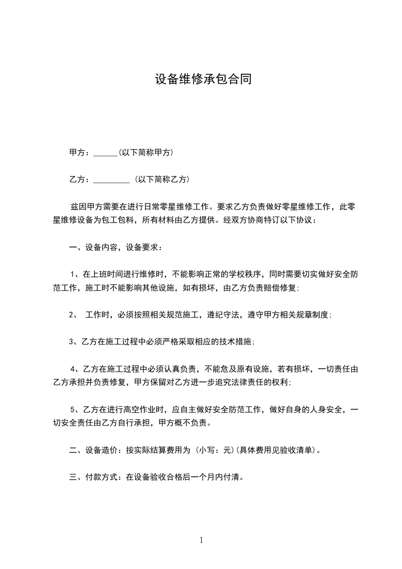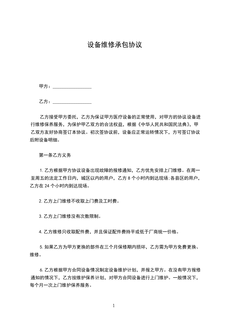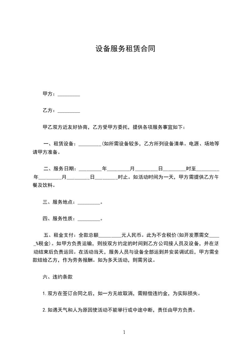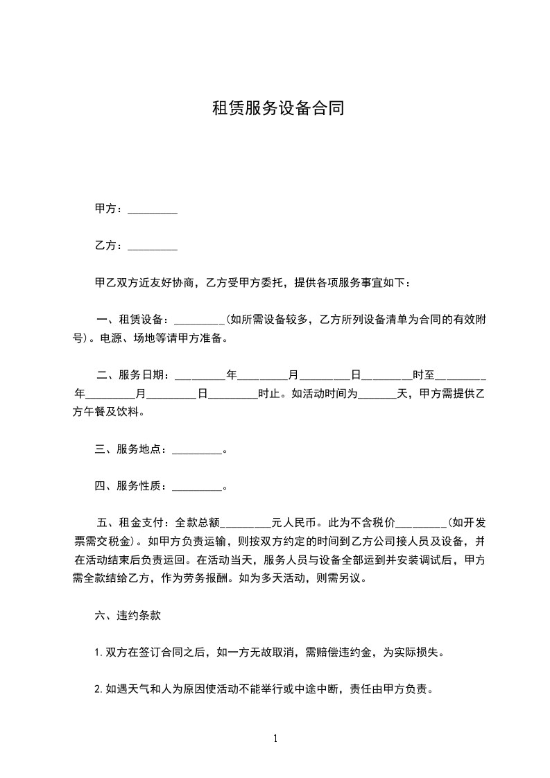 经甲乙双方友好商定,关于乙方向甲方提供设备租赁服务事宜,依照《中华人民共和国民法典》有关规定,为明确双方的权利和义务,经双方友好协商签订本合同。