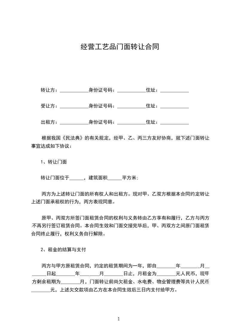 根据我国《民法典》的有关规定,经甲、乙、丙三方友好协商,就下述门面转让事宜达成如下协议: