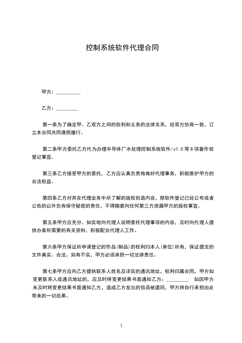 第二条甲方委托乙方代为办理半导体厂水处理控制系统软件/v1.0等8项著作权登记事宜。