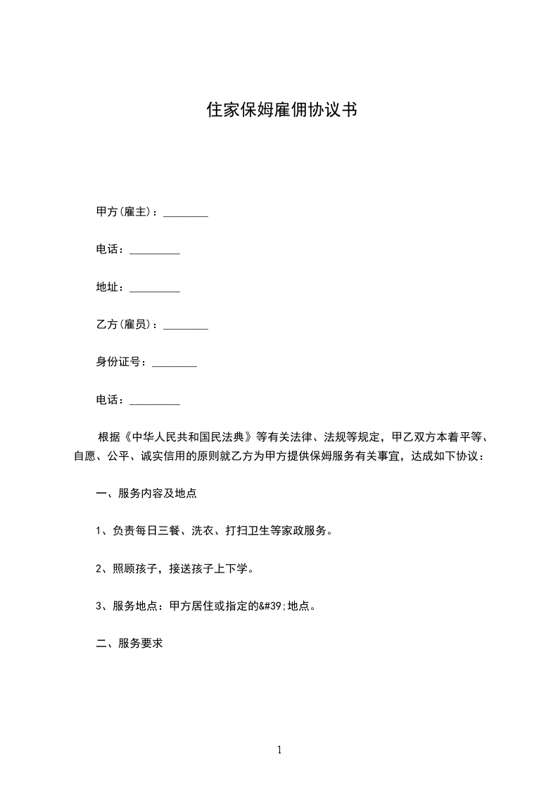 根据《中华人民共和国民法典》等有关法律、法规等规定,甲乙双方本着平等、自愿、公平、诚实信用的原则就乙方为甲方提供保姆服务有关事宜,达成如下协议: