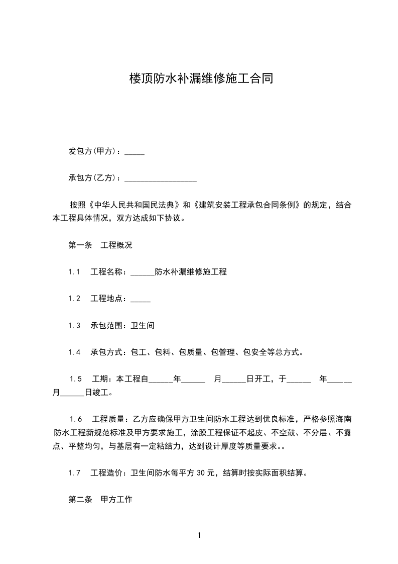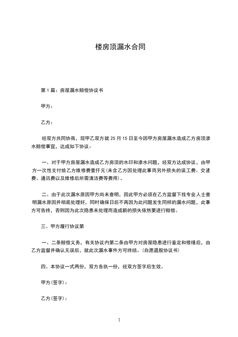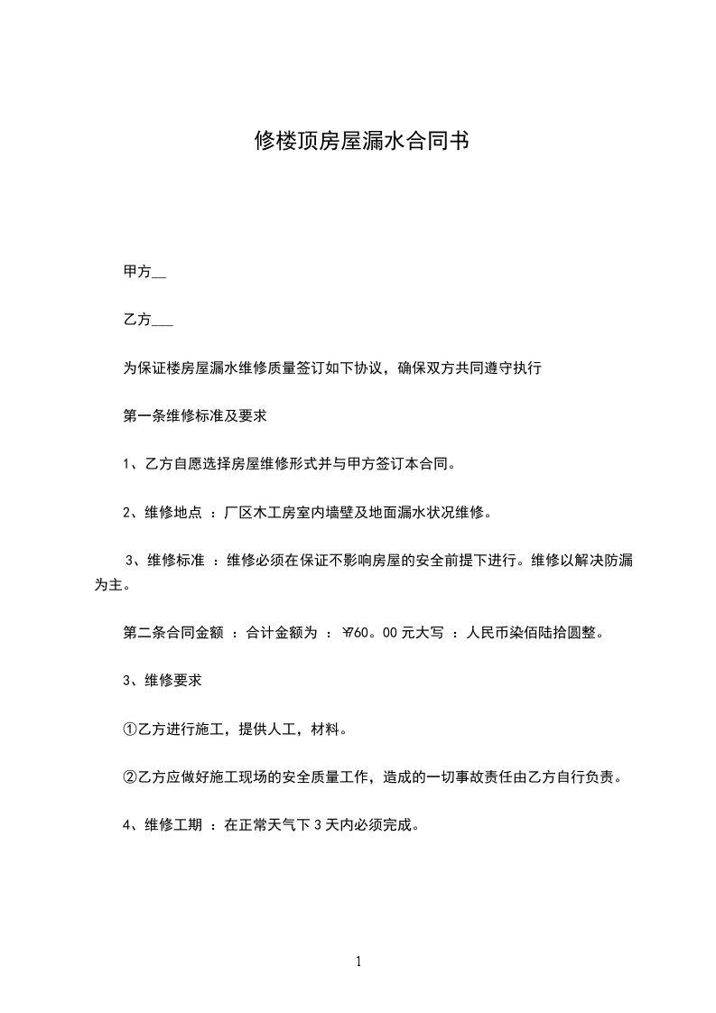 楼顶漏水维修协议书