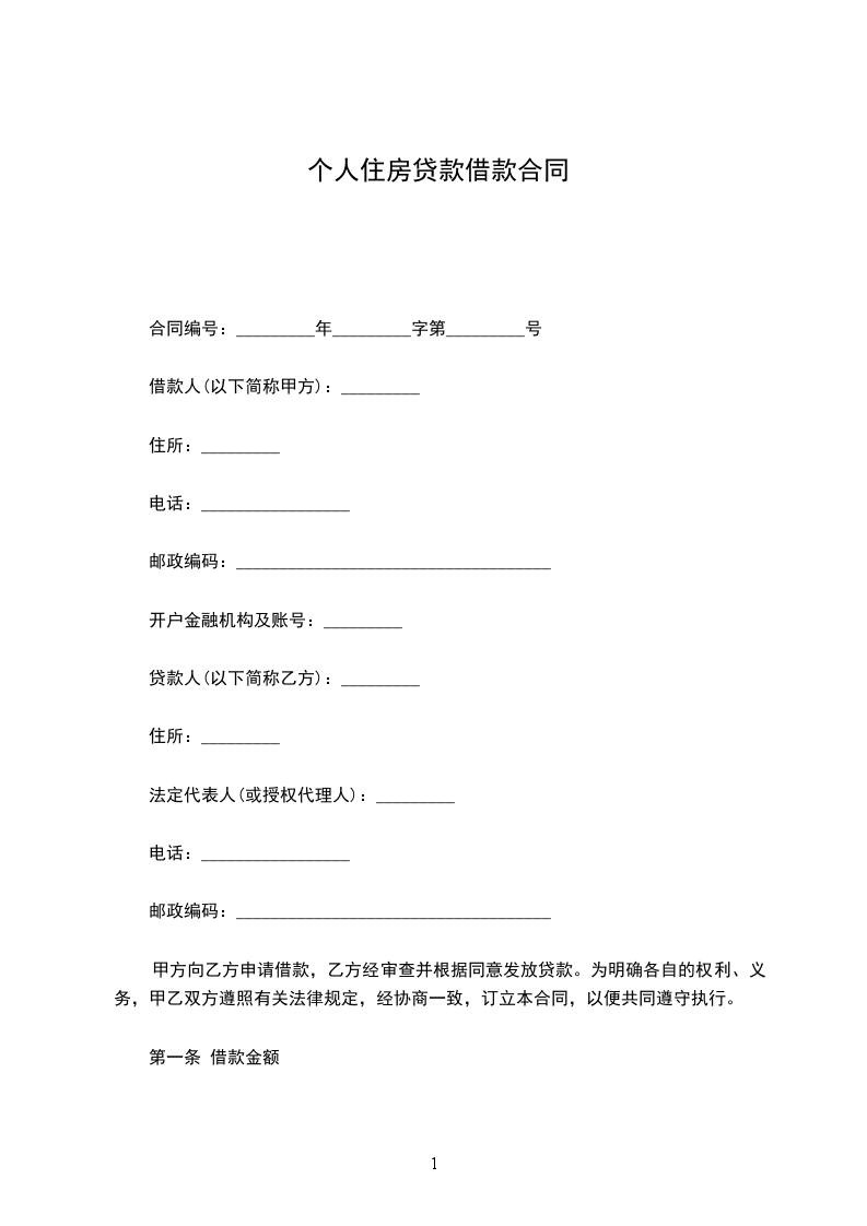 第一条 借款金额