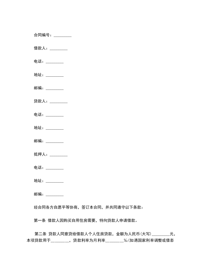 贷款人(以下简称乙方):_________