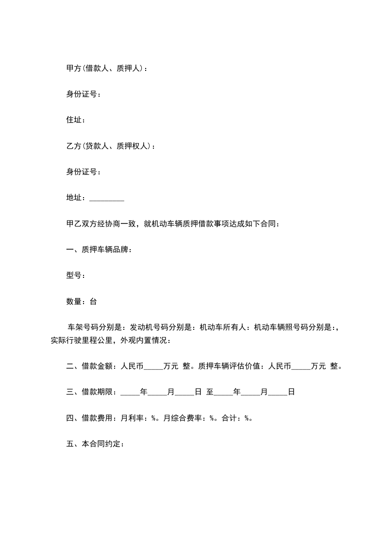 二、借款金额:人民币_____万元 整。质押车辆评估价值:人民币_____万元 整。