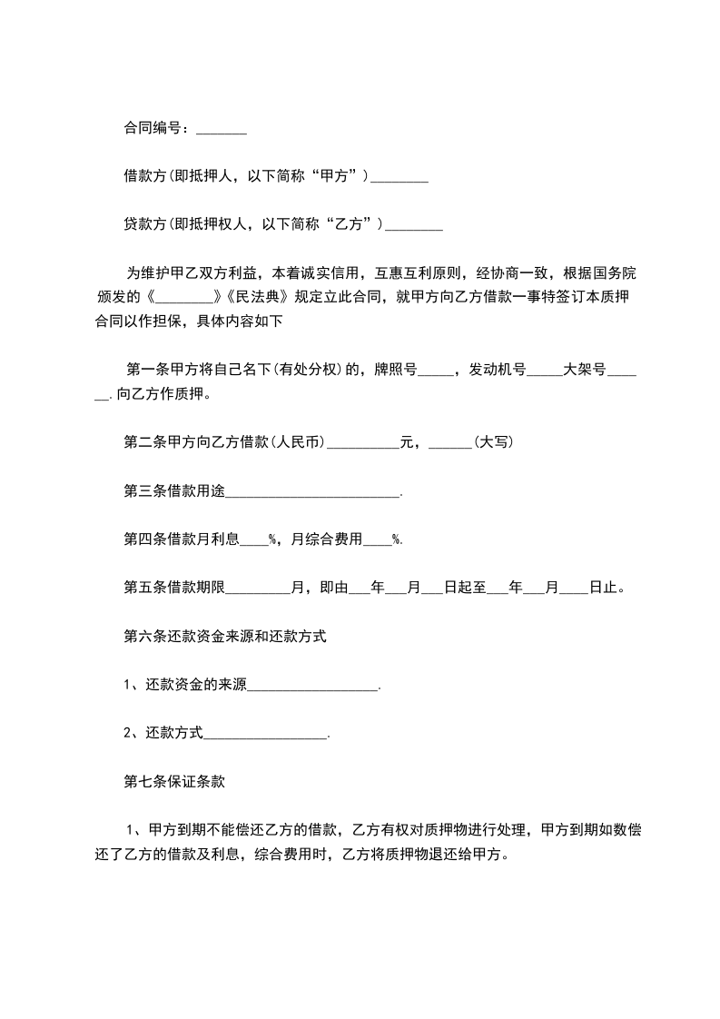七、甲方保证对质押机动车辆依法享有所有权。