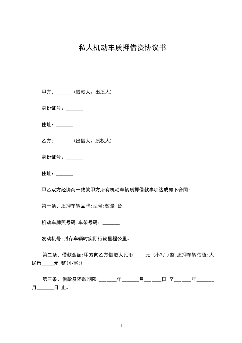 甲乙双方经协商一致,就机动车辆质押借款事项达成如下合同:
