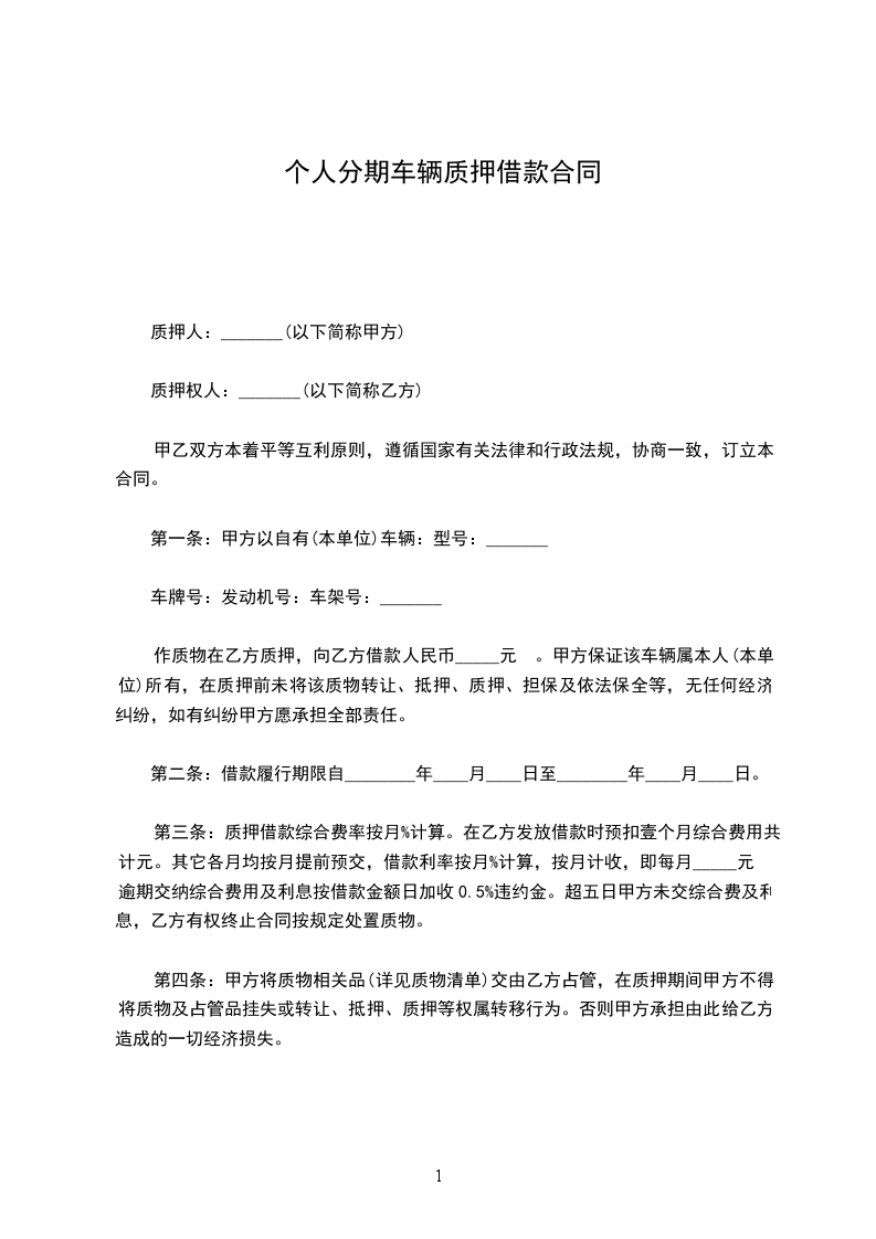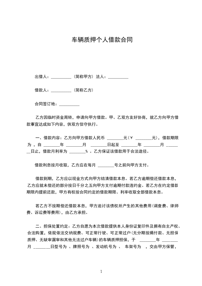 1、乙方未按本合同规定的时间偿还本息和综合费用、不办理续期手续、不交纳续期利息和综合费用,则甲方有权处理质押车辆,按双方签约时共同认定的价值出售汽车。若甲方暂未出售汽车,甲方享有质押车辆的使用权、收益权。