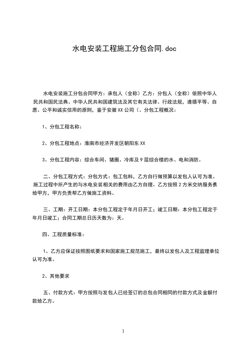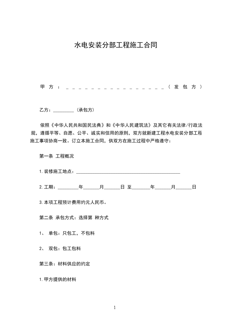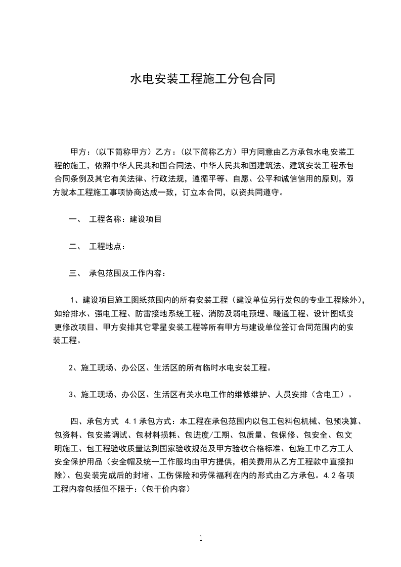 1 承包形式:清包工。