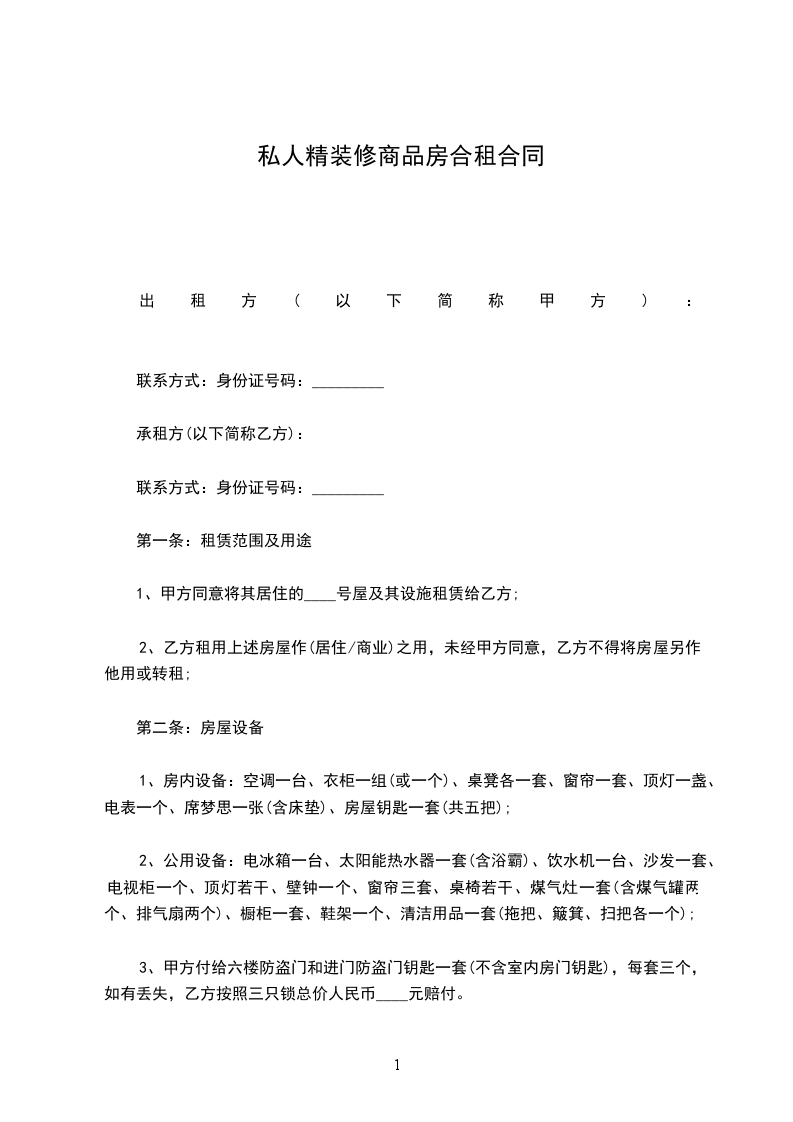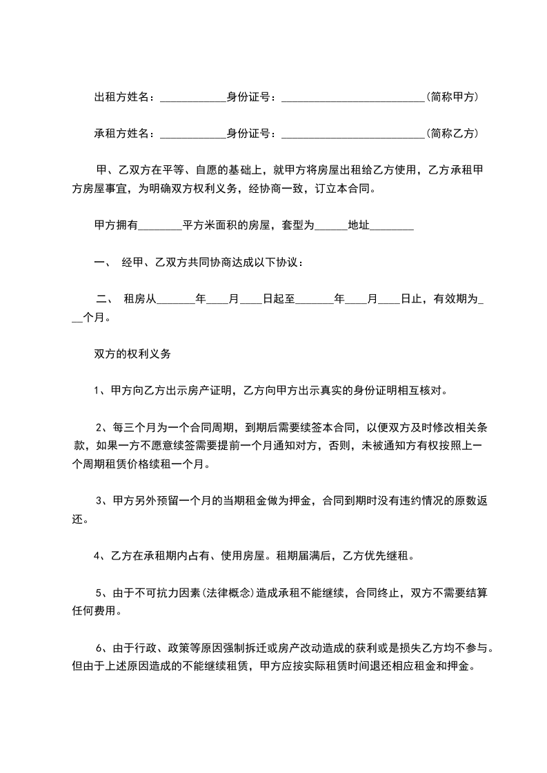 承租方姓名:____________身份证号:__________________________(简称乙方)