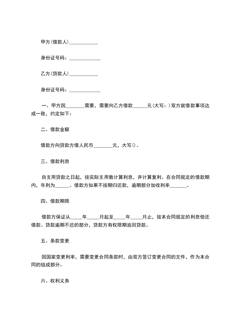一、借款金额:乙方向甲方借款人民币______万仟______元(¥:________)。