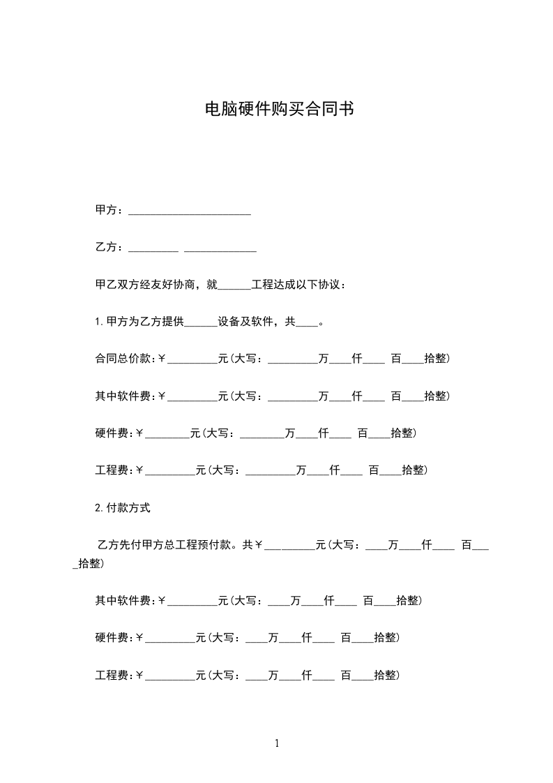 硬件费:¥________元(大写:________万____仟____ 百____拾整)