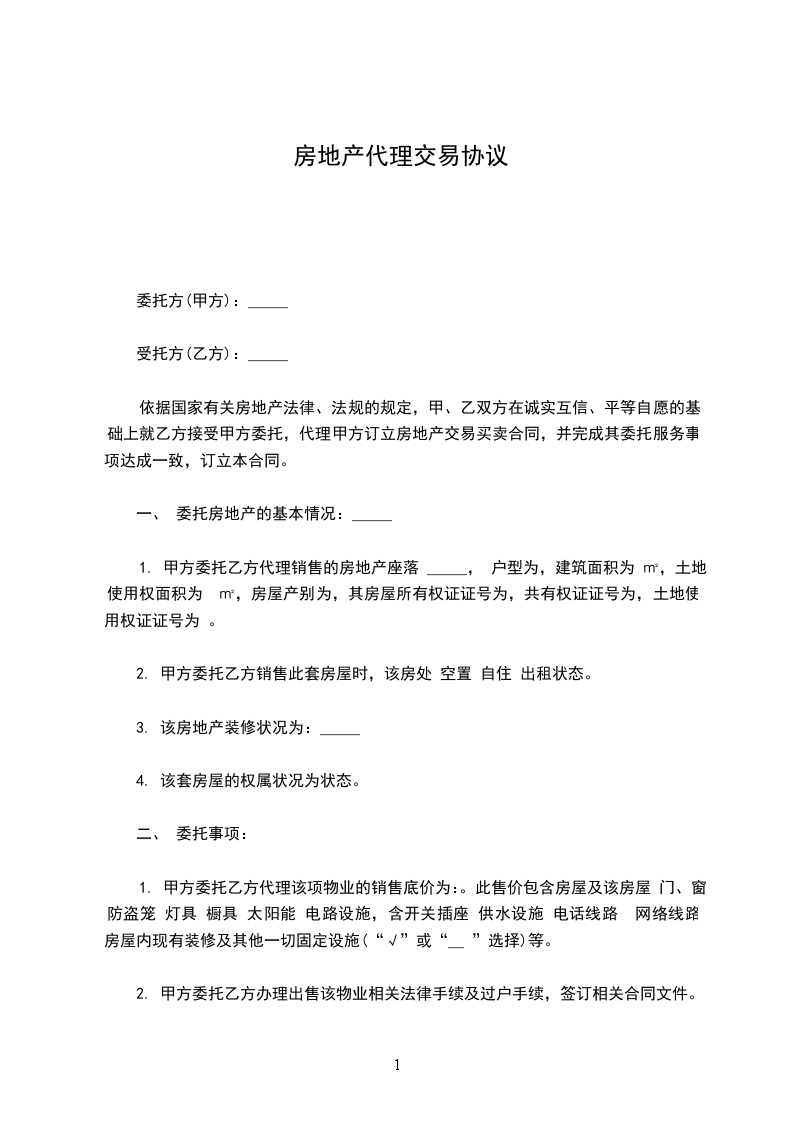 3.甲方在签订委托协议时,应按委托价的千分之一向乙方预付定金,若乙方在委托期内未完成交易且甲方不再延期委托的,乙方只向甲方收取成本费。其余款项在委托协议中止时即退还给甲方。