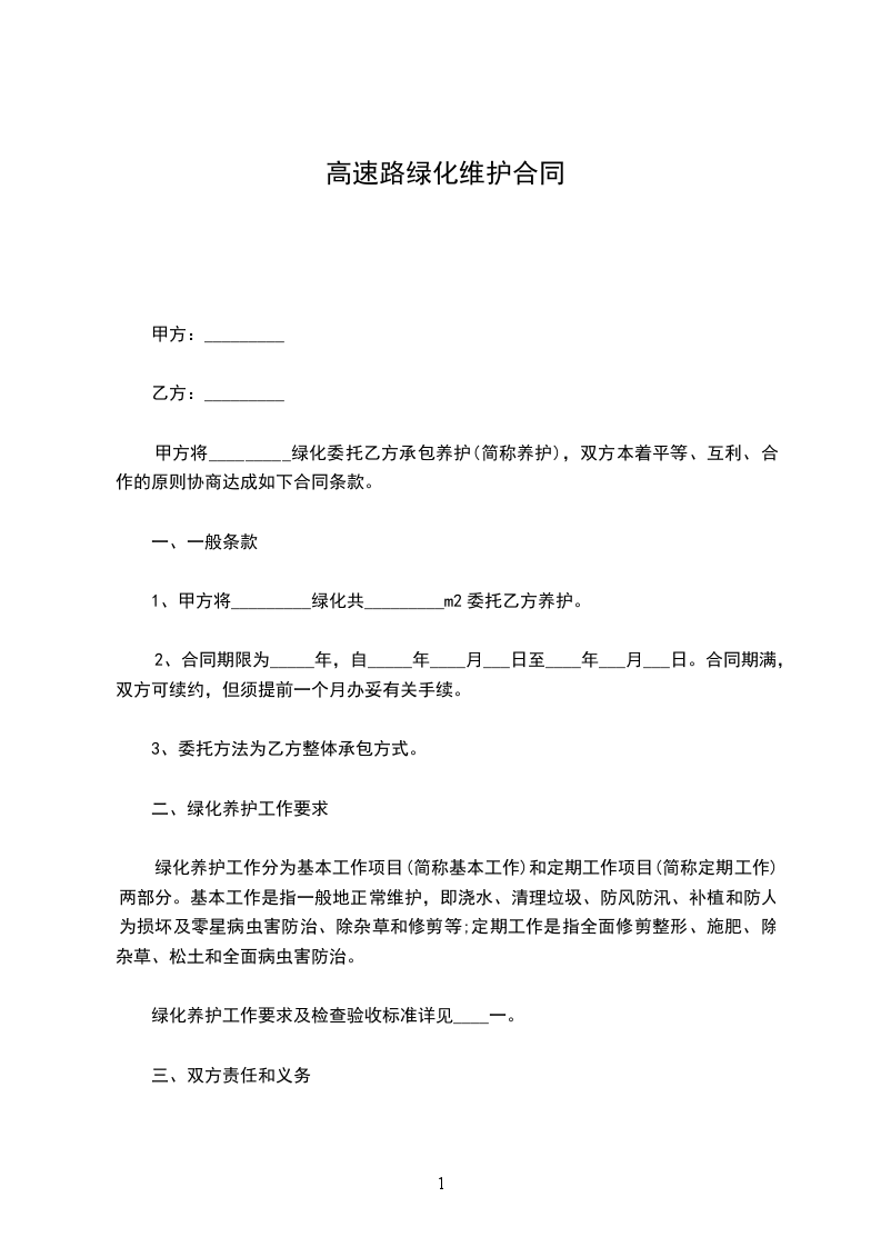 1、甲方将_________绿化共_________m2委托乙方养护。