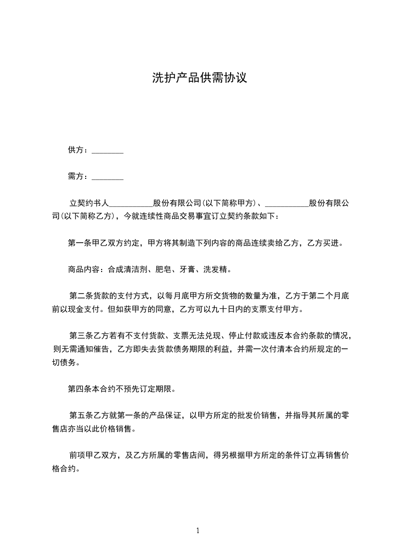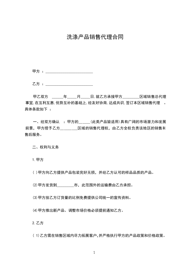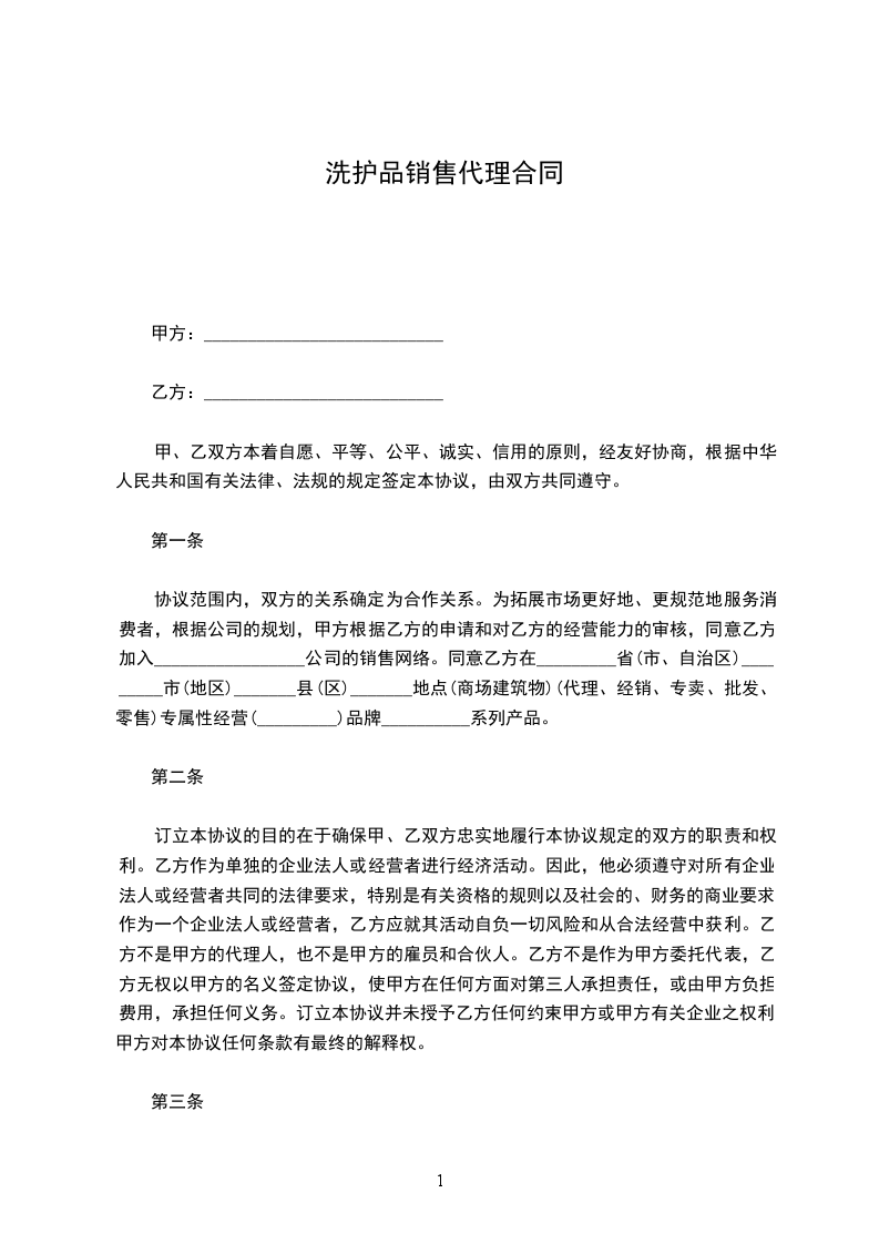 洗护产品代理合同