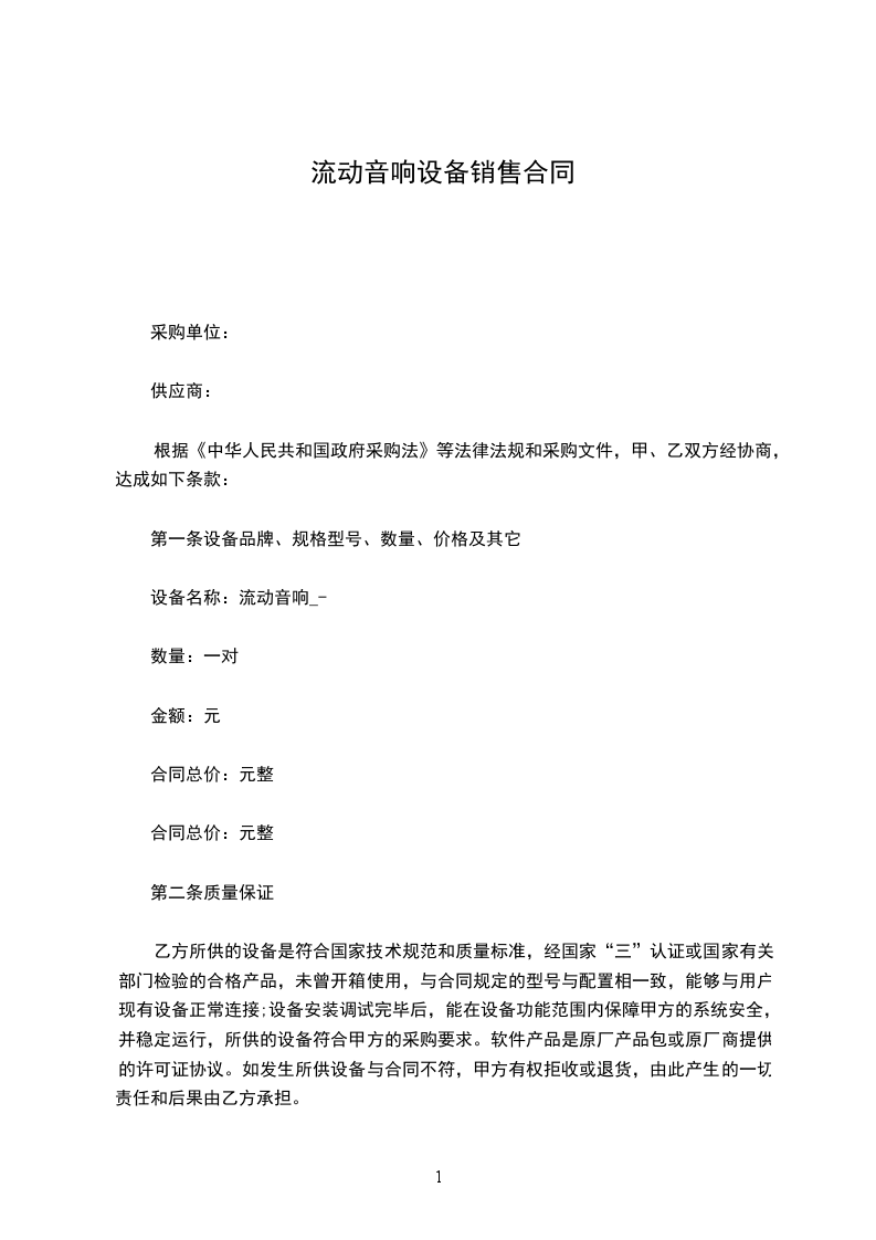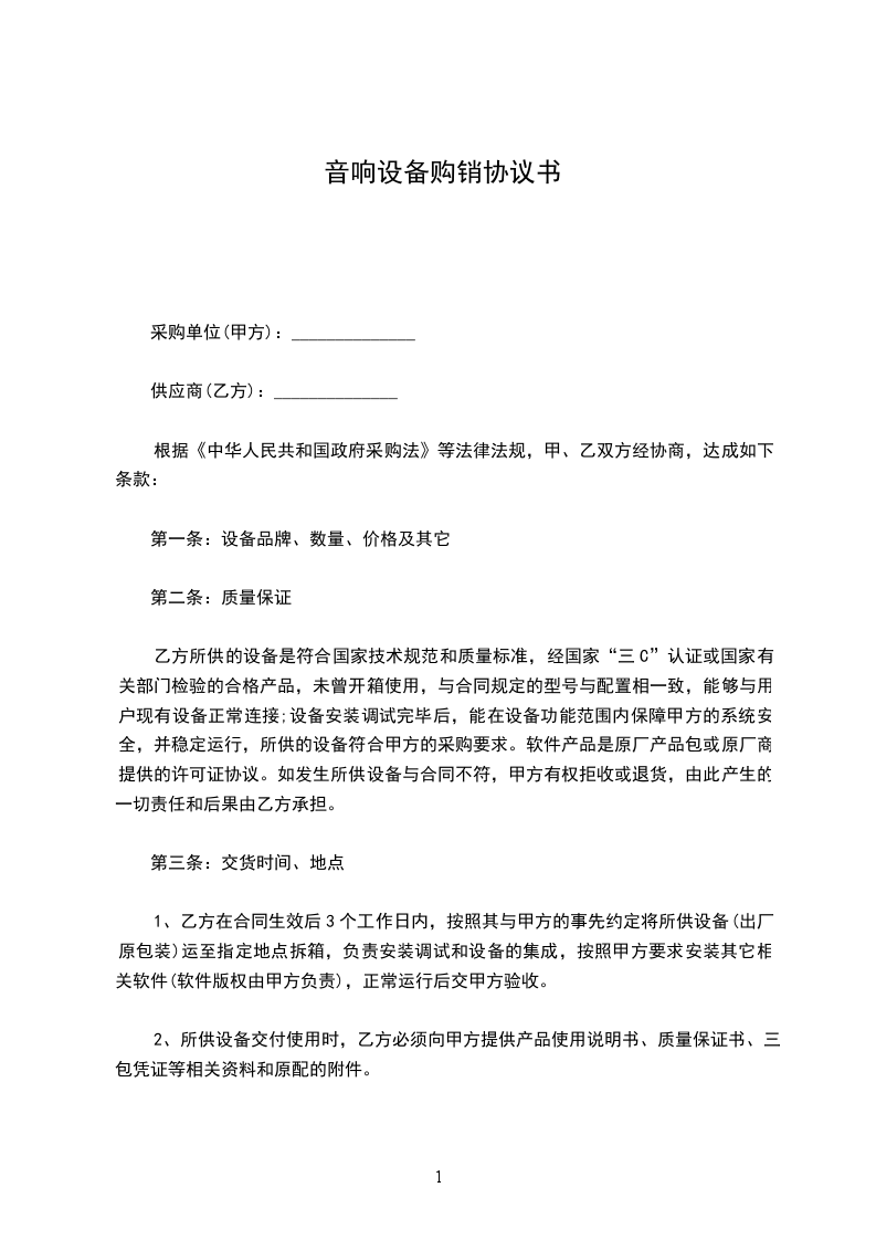 购货单位:__________(以下简称甲方)