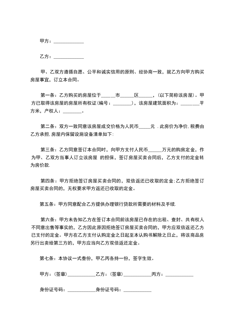 乙双方经协商达成一致,同意上述房地产转让价格为人民币:元整。甲、乙双方同意,自本合同签订之日起,乙方分三次将房款付给甲方。具体时间为:本合同生效之日起十日内乙方交付贰万元;___年___月___日前付伍万元;其余在产权转移时全部交清。