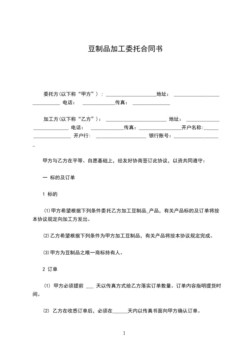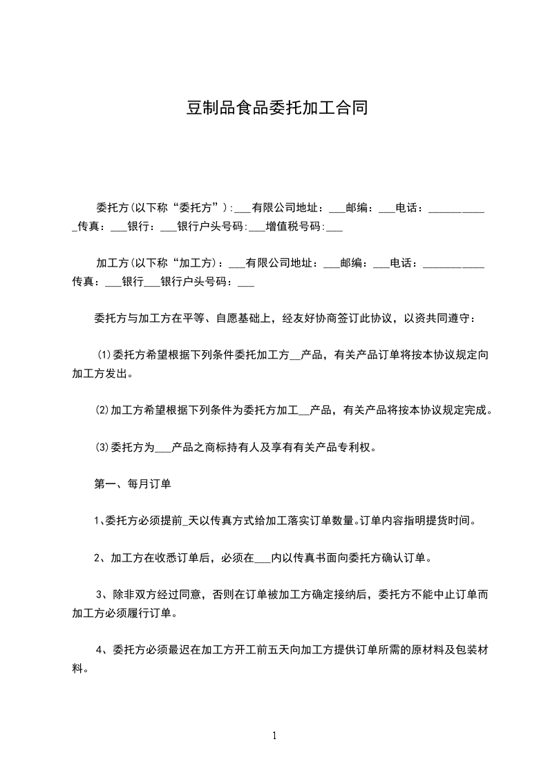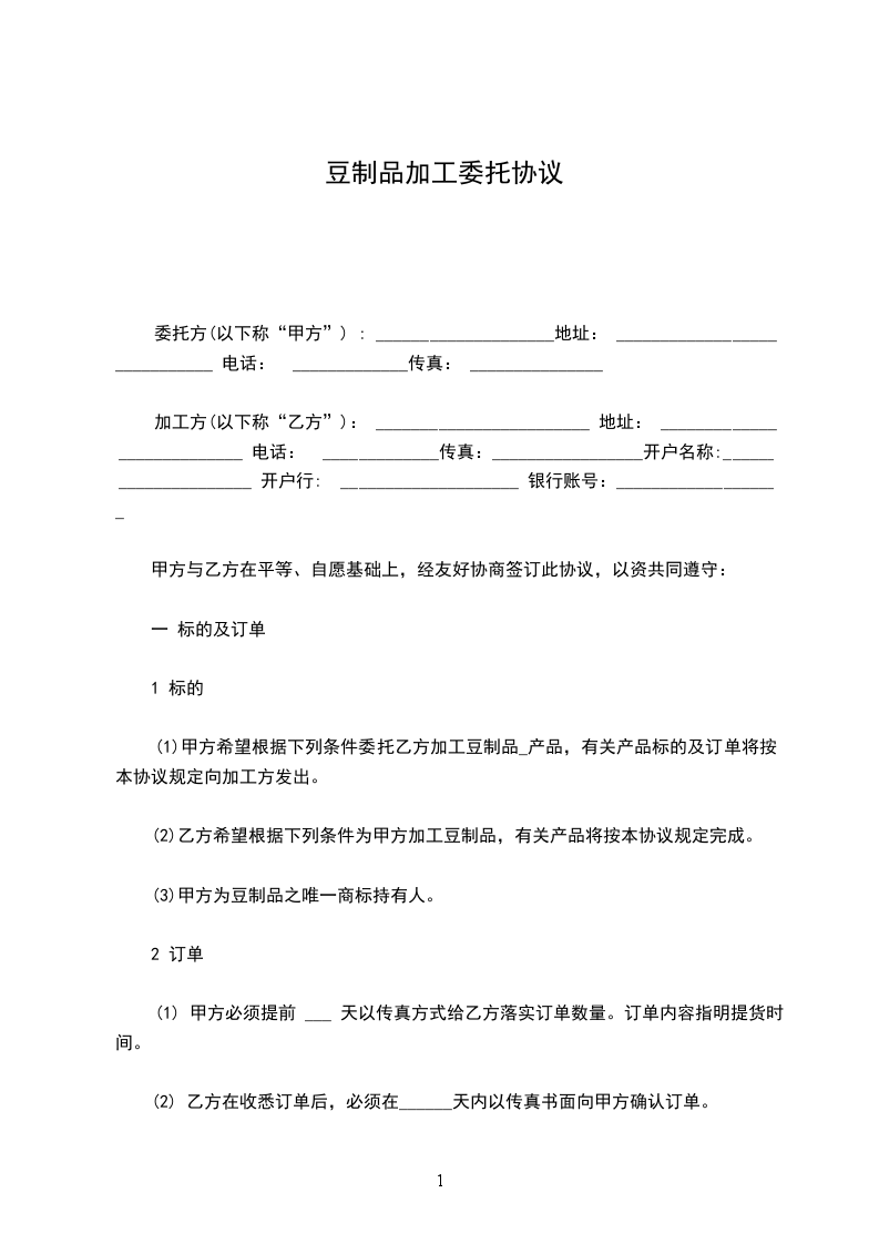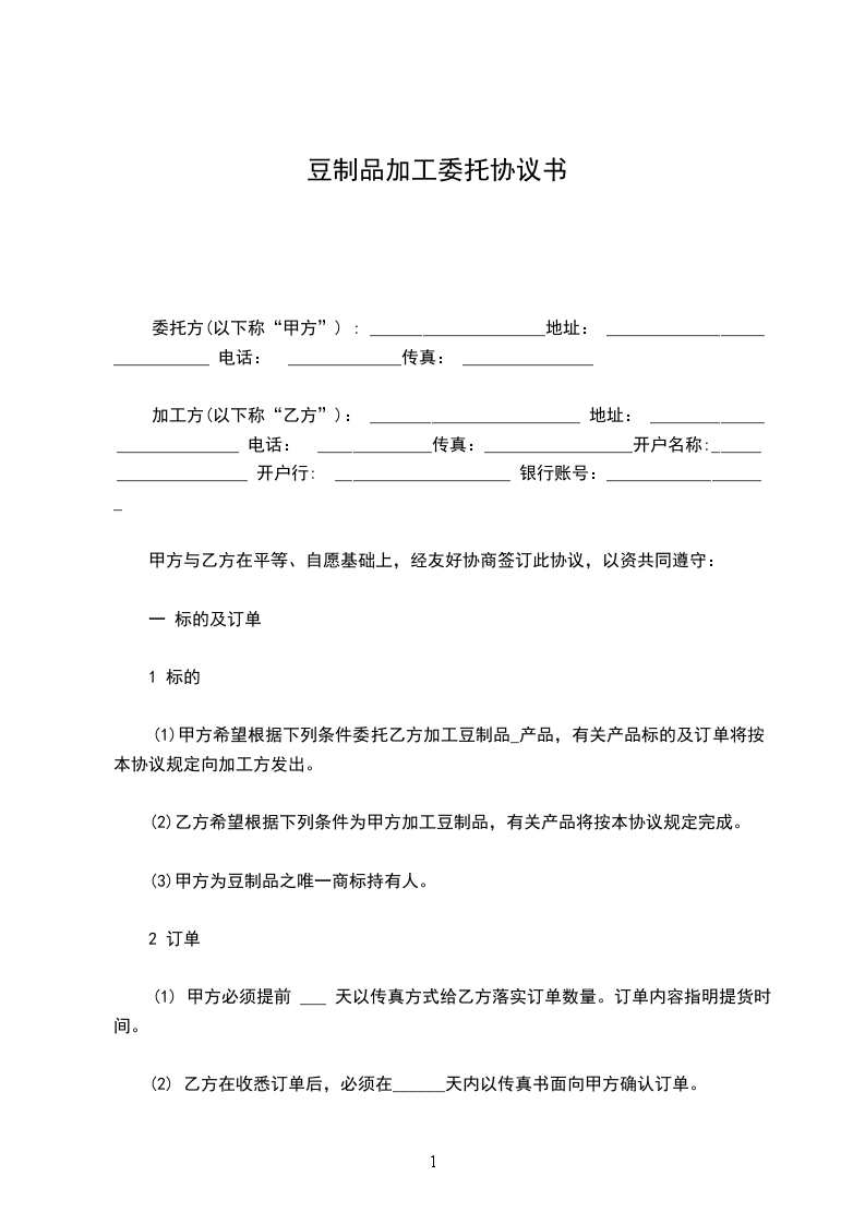1、甲方根据市场销售情况,于每月______日以书面或传真形式向乙方提供次月订单,明确订单的数量和供货时间,乙方如有异议,应在接订单后1日内书面提出,否则,视为同意。