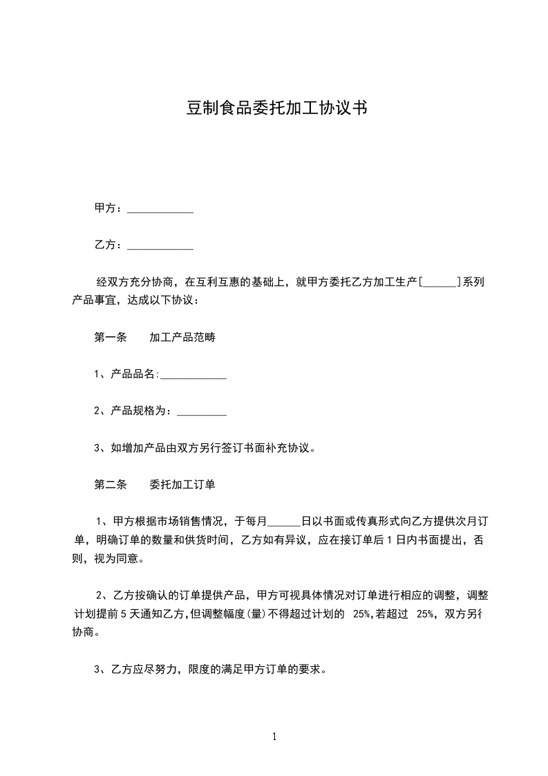 经双方充分协商,在互利互惠的基础上,就甲方委托乙方加工生产[______]系列产品事宜,达成以下协议: