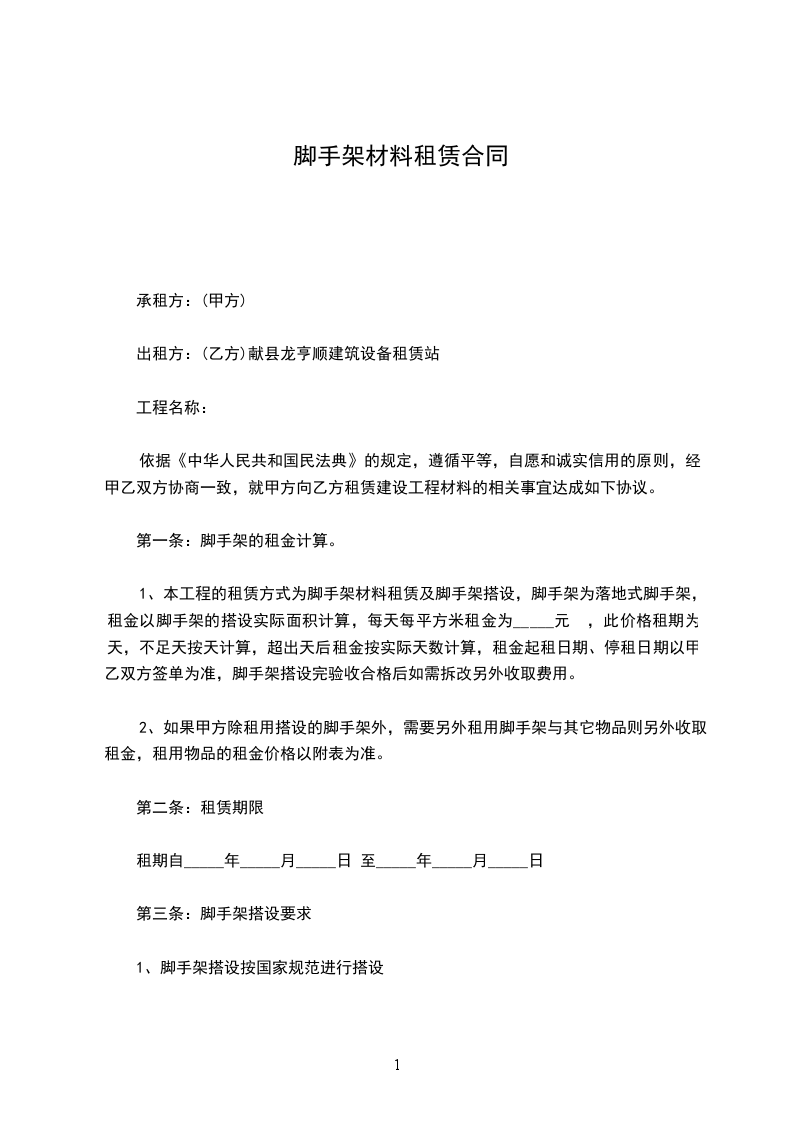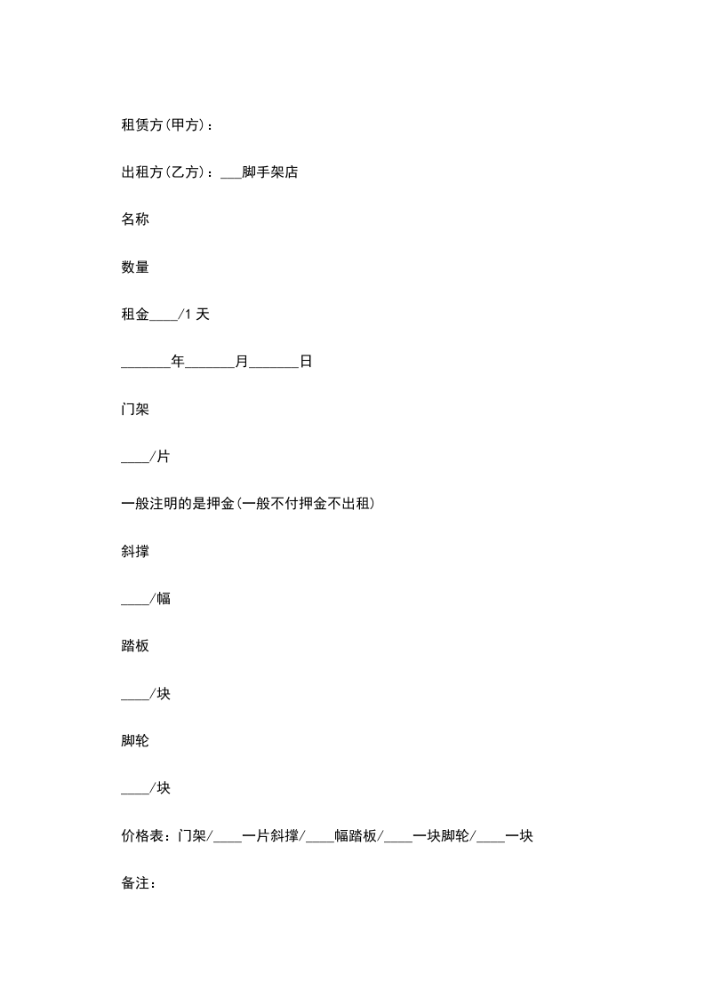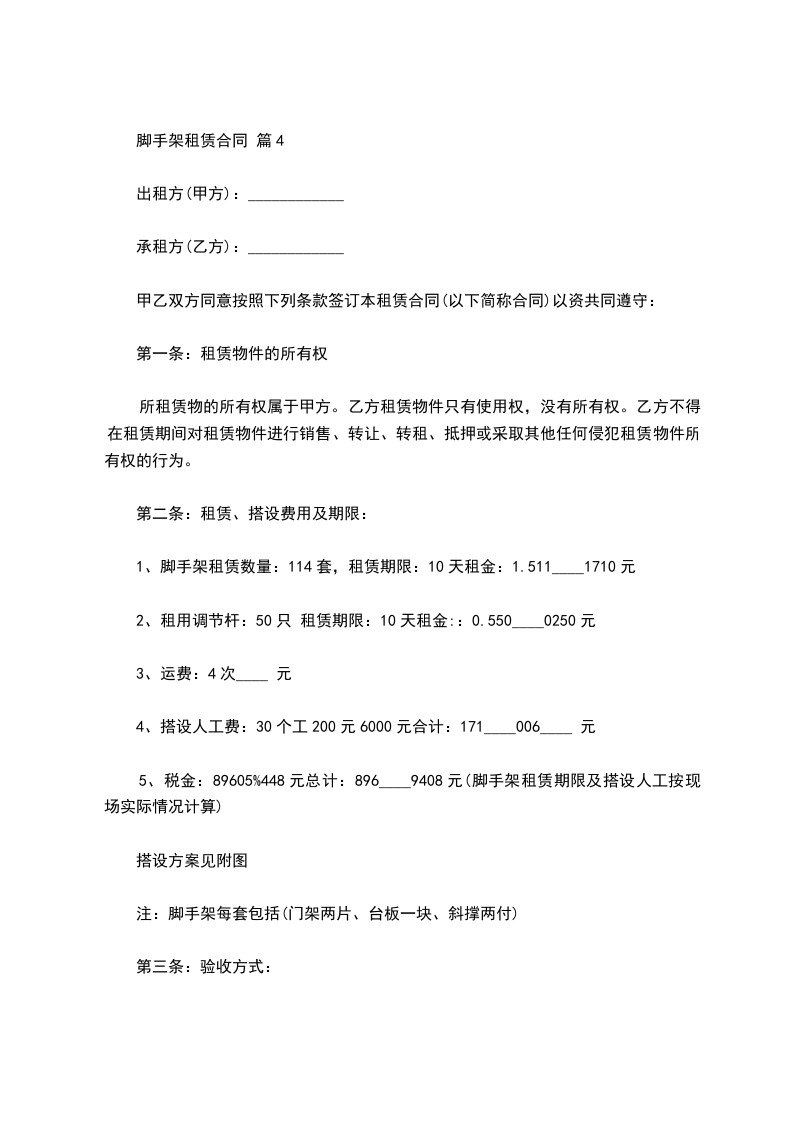 1、脚手架租赁数量:114套,租赁期限:10天租金:1.511____1710元