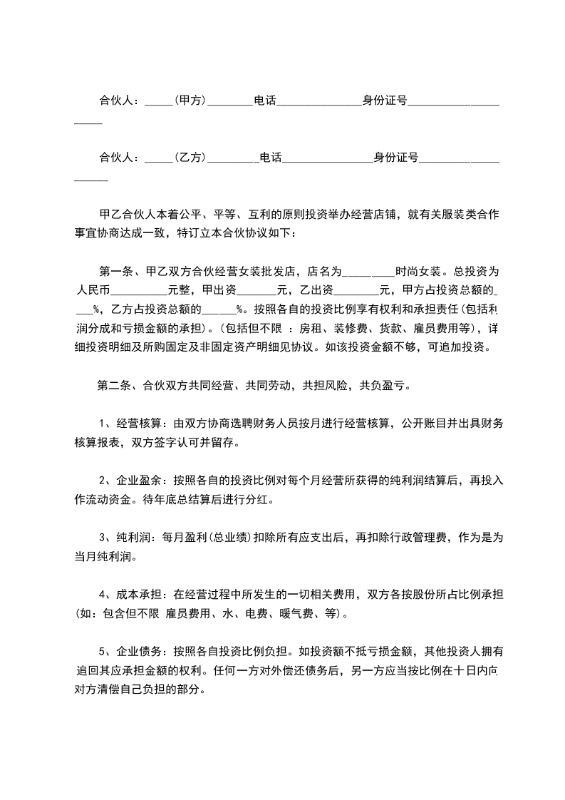 1.联营成员不得中途退出,如果退出,除赔偿其所造成的全部损失外,还应付其出资额的5%作违约金。