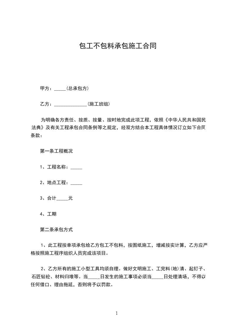 采用包工不包料方式承包。