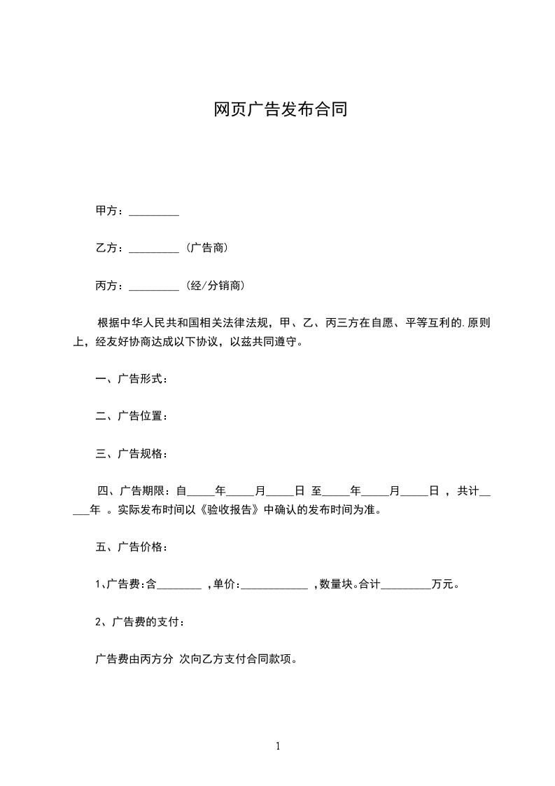 第一期款:签定合同后 日内,丙方向乙方支付广告费,计 _________万元(大写:)。