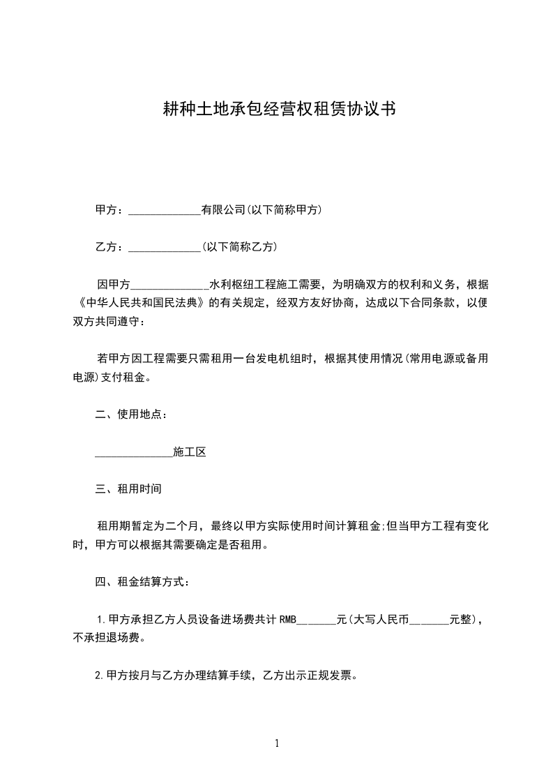 1、无正当理由单方变更或解除合同的,应向另一方当事人支付违约金并赔偿相应损失(如乙方在土地上投入的人力、物力成本和合理的孳息)。违约金的数额为人民币______元。