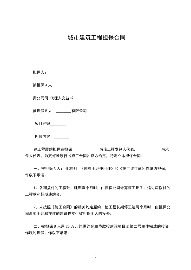 一、被担保A人:用该项目《国有土地使用证》和《施工许可证》作履约担保,作以下承诺: