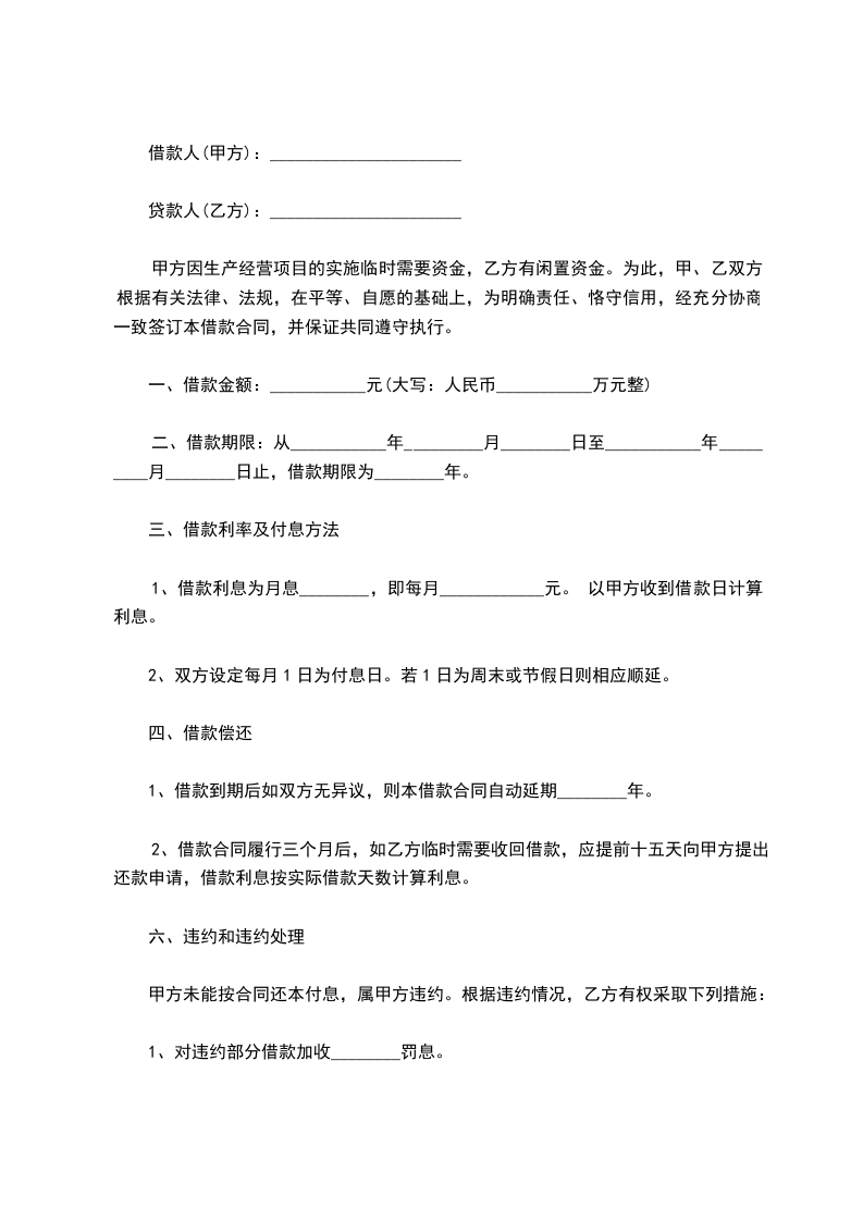 二、借款期限:从___________年_________月________日至___________年_________月________日止,借款期限为________年。