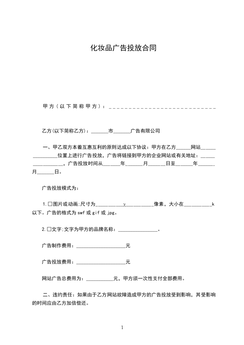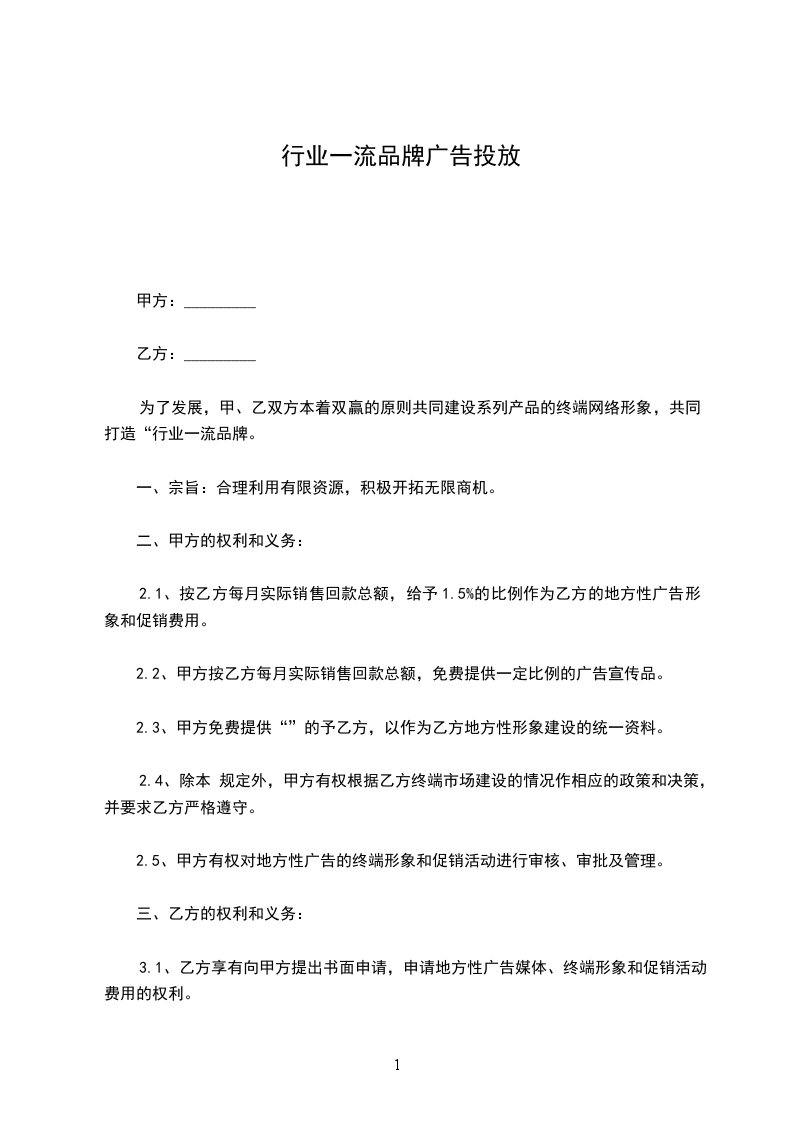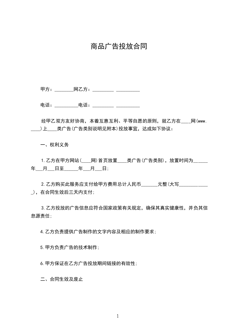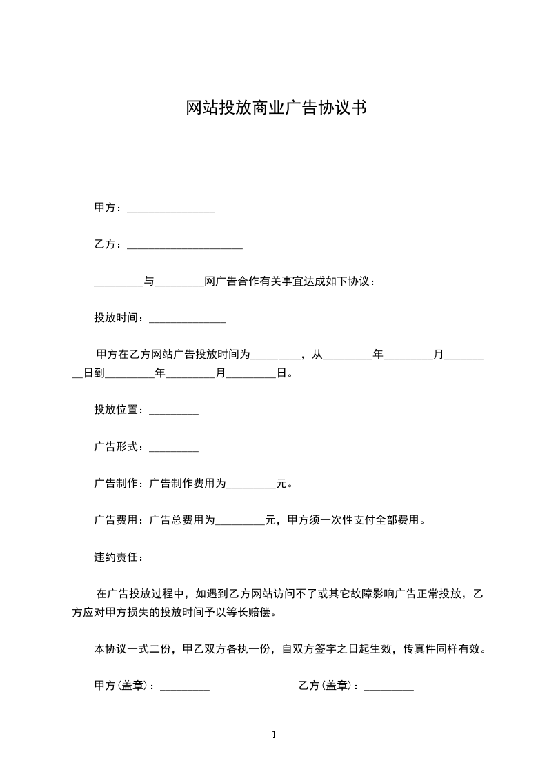 经甲乙双方友好协商,本着互惠互利、平等自愿的原则,就乙方在____网(www. ____)上____类广告(广告类别说明见附本)投放事宜,达成如下协议:
