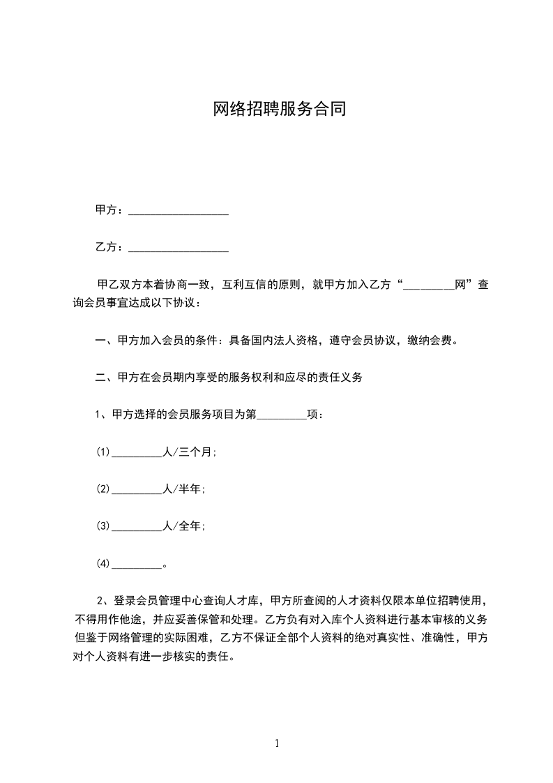 甲乙双方本着协商一致,互利互信的原则,就甲方加入乙方“_________网”查询会员事宜达成以下协议: